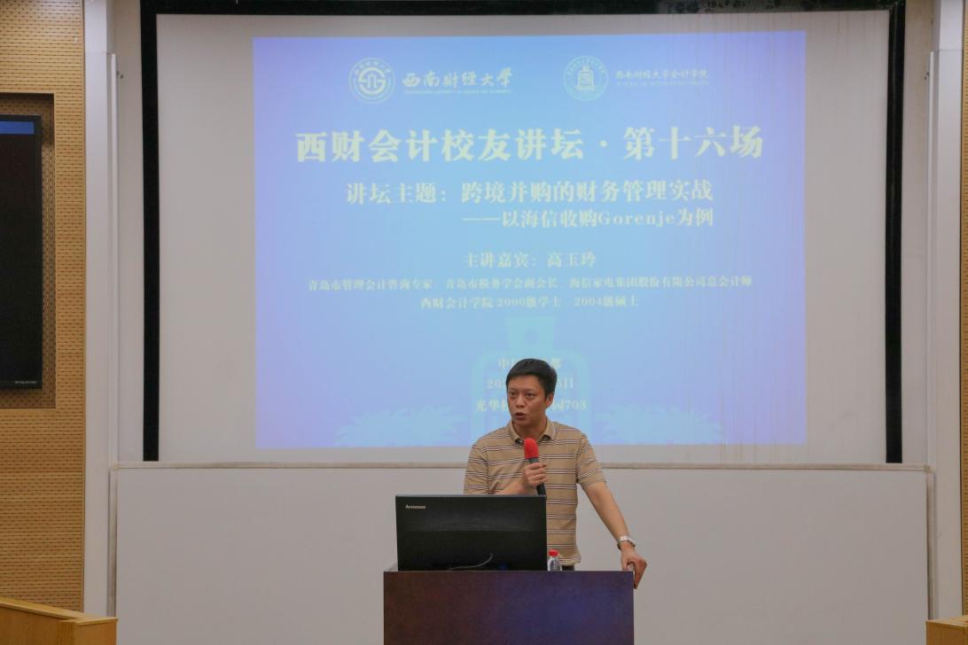 海信集团跨境并购的财务管理实战——西财会计员工讲坛•第十六场 2021年5月25日下午,“西财会计员工讲坛·第十六场”在光华校区育才园成功举办。公司邀请了2000级学士、2004级硕士员工,青岛...