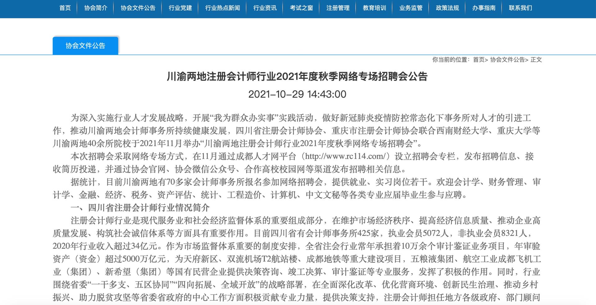 为深入实施行业人才发展战略,开展“我为群众办实事”实践活动,做好新冠肺炎疫情防控常态化下事务所对人才的引进工作,推动川渝两地会计师事务所持续健康发展,四川省注册会计师协会联合重...
