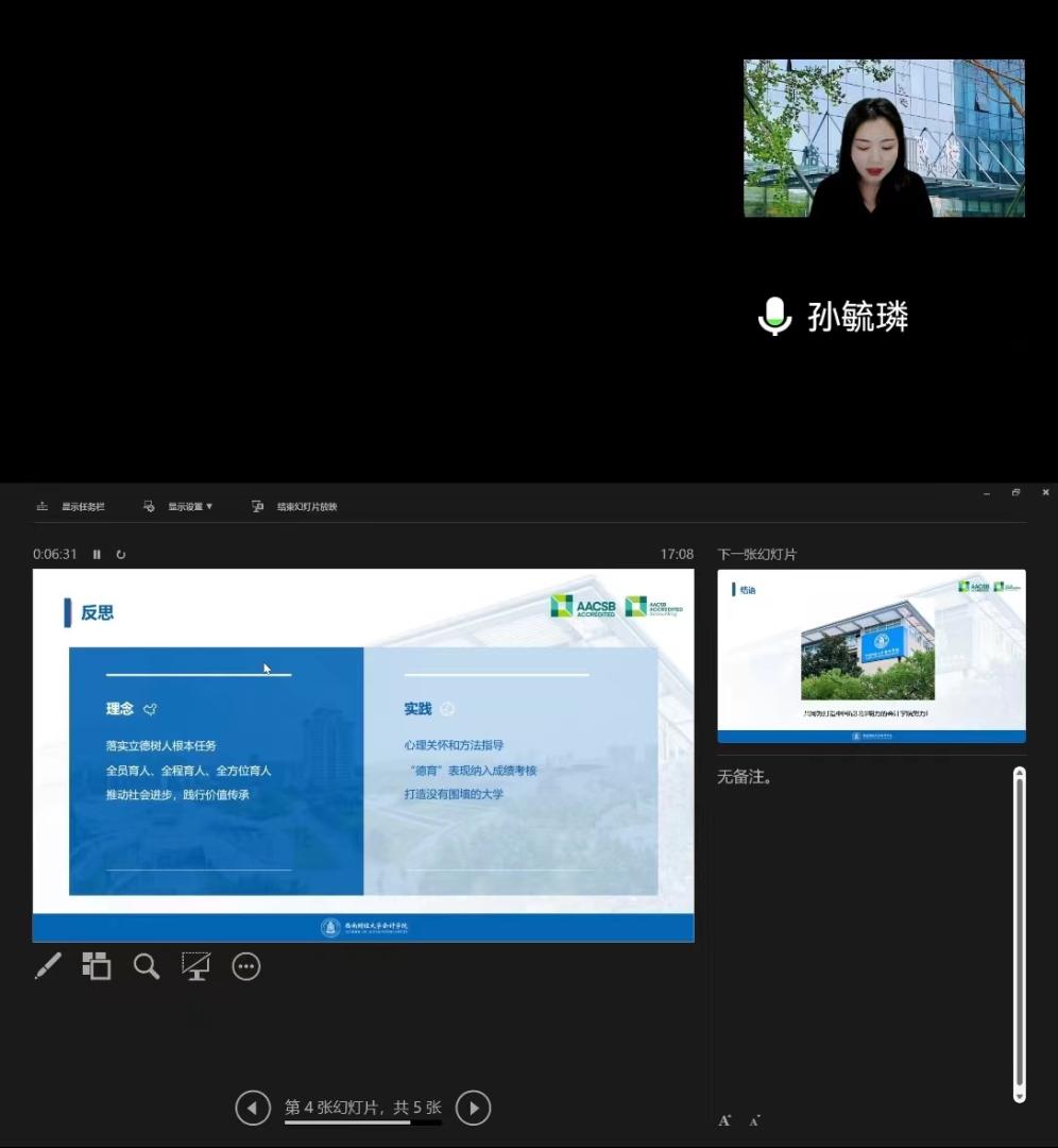 11月8日16:30,K1体育教师集中研讨了思政课程与课程思政教育。3位教师代表进行发言并展开研讨。 会计系代表杨奕楠老师展开了关于“课程思政或许可以这么做”的分享体会,提出了“顺其自然...