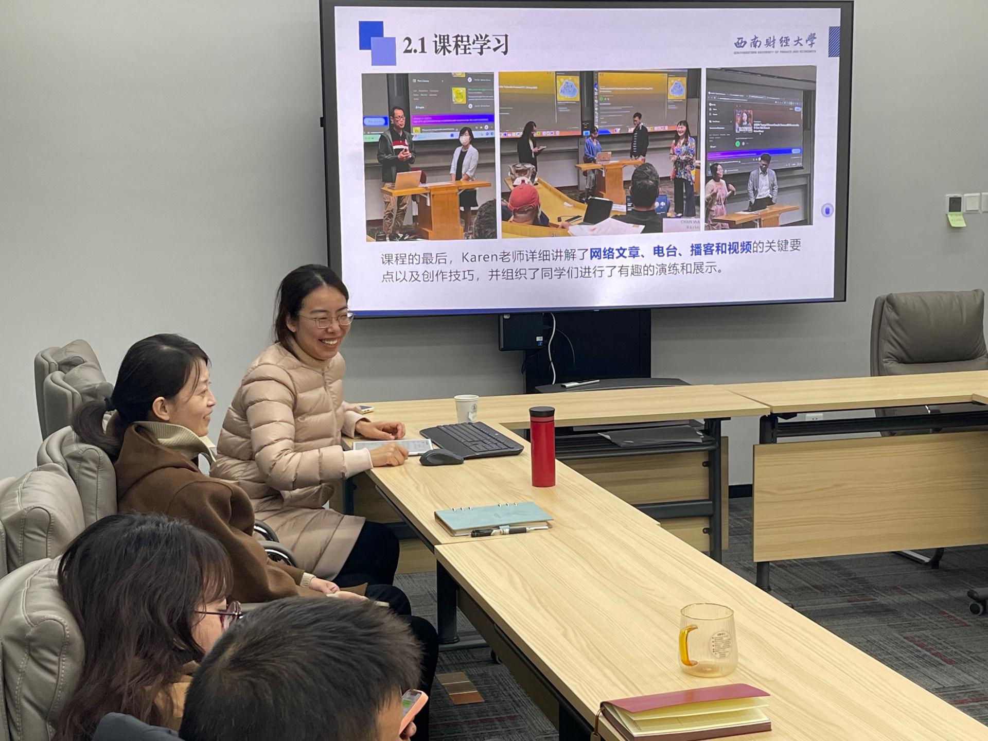本期沙龙主题重点围绕新闻宣传能力提升和辅导员境外研修学习分享两个方面进行。闫文静以“好故事,从何而来?——关于新闻选题策划与案例分享”为题作专题分享。她从新闻的价值和意义为切入点,结合自己对公司新闻的采编经历和报道案例,围绕“有故事是本事,讲故事是能力”“有感染力地讲故事”“讲好西财故事”三个方面,与辅导员们分享事件背后的故事和新闻报道中常见的规范与技巧。她表示,辅导员们要时刻保持新闻敏感度和工作责任感,做到“人人都是宣传员”,积极挖掘公司身边优秀员工的闪光点,以“小切口”反映“大主题”,为讲述西财好故事,传播西财好声音,展现西财好形象,涵养西财好情怀出谋划策。