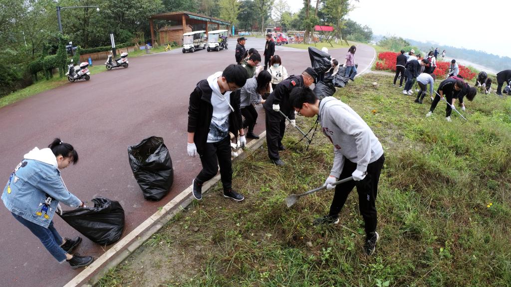 劳动结束后,师生一行人漫步金马河畔。河风吹过,带着些许寒意,入秋后的金马河两岸一片荒芜,自然景观并不起眼,但河堤上一尘不染的步行道却不失为一道亮丽的风景。只有亲历劳动时的不易,才明白眼前的洁净有多么珍贵,前后对比中,同学们爱护环境卫生、珍惜他人劳动成果的意识得到了加强。