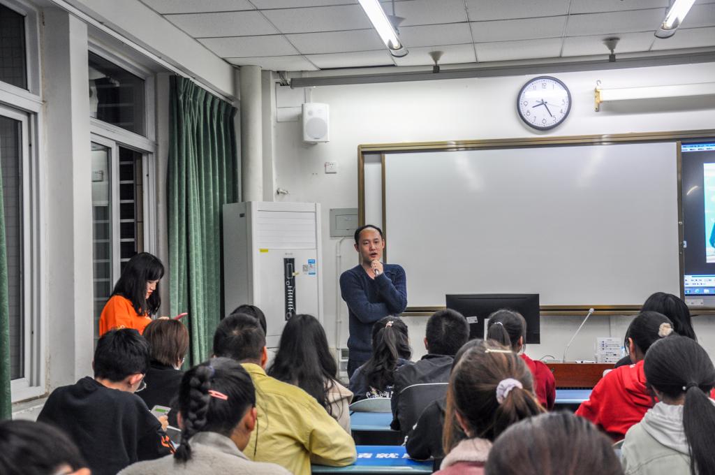 活动伊始,成都好视优品网络科技有限公司刘奕君女士讲述了传统视频与新兴视频间的差异,并以抖音、B站、快手等短视频行业翘楚为例,具体分析了互联网短视频行业的发展趋势。随后,该公司旗下摄影师冯哲辉从运镜、拍摄角度等方面讲解下短视频拍摄的技巧,并邀请同学上台体验,亲身感受技巧使用带来的变化。最后,公司执行董事兼总经理周谷先生分享了他的新媒体创业经历。