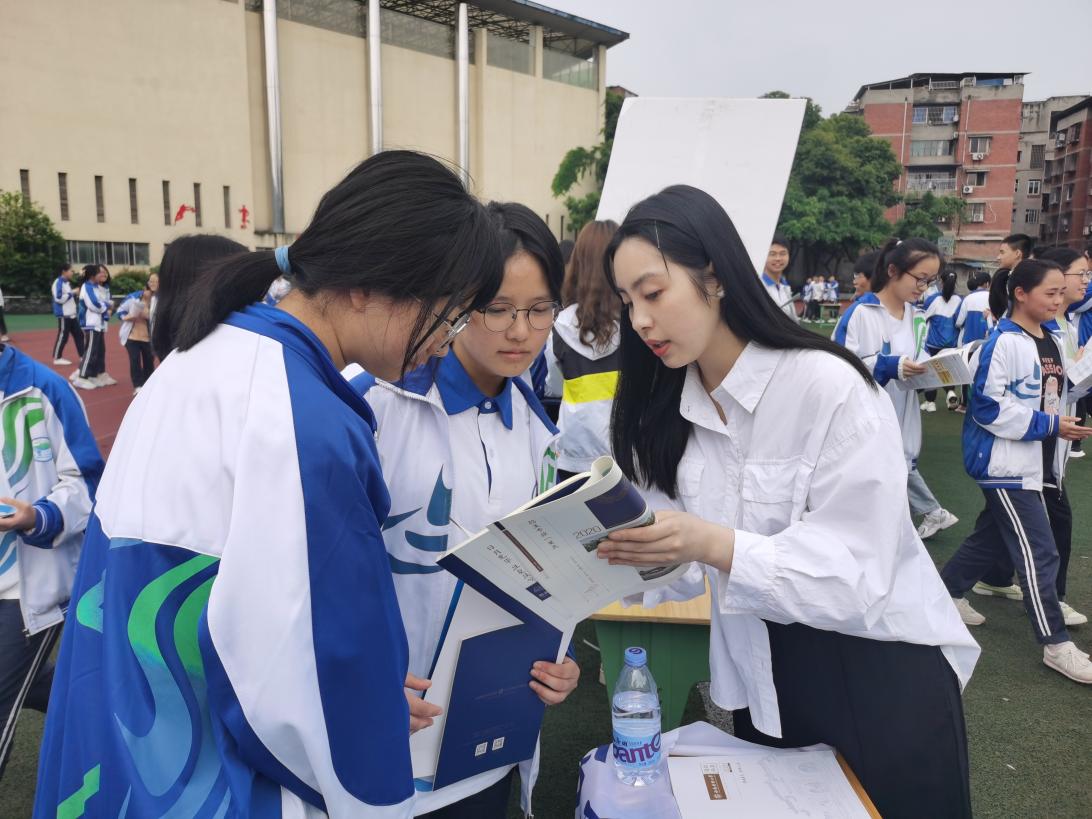 5月12-13日,公司普通本科招生宣传专项工作小组成员王梦乐、胡紫薇前往仁寿一中(南校区)、铧强中学、仁寿一中(北校区)、华兴中学、眉山一中、彭山一中、眉山车城中学和洪雅中学,与中员工开展招生宣传交流活动。在现场,两位老师向前来咨询的员工介绍了公司的基本情况,重点讲解了公司近年来的调档分数线,回答了大家密切关心的问题,热情指导同学们在财经领域道路上成长与发展。