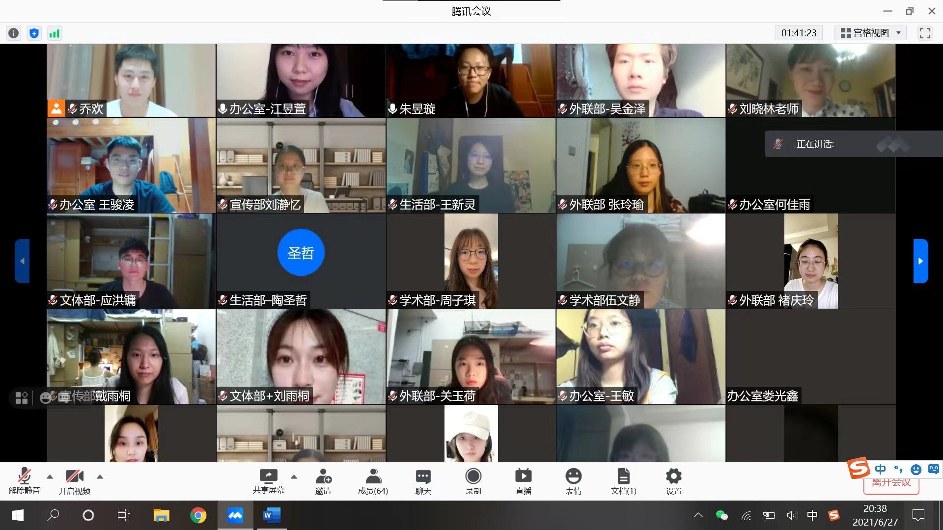6月27日晚,K1体育研究生联合会在腾讯会议举行了2020-2021学年下半学期总结大会,大会由研会办公室成员江昱萱主持,研会指导老师刘晓林以及全体研会成员共同出席,会议分四个环节进行: