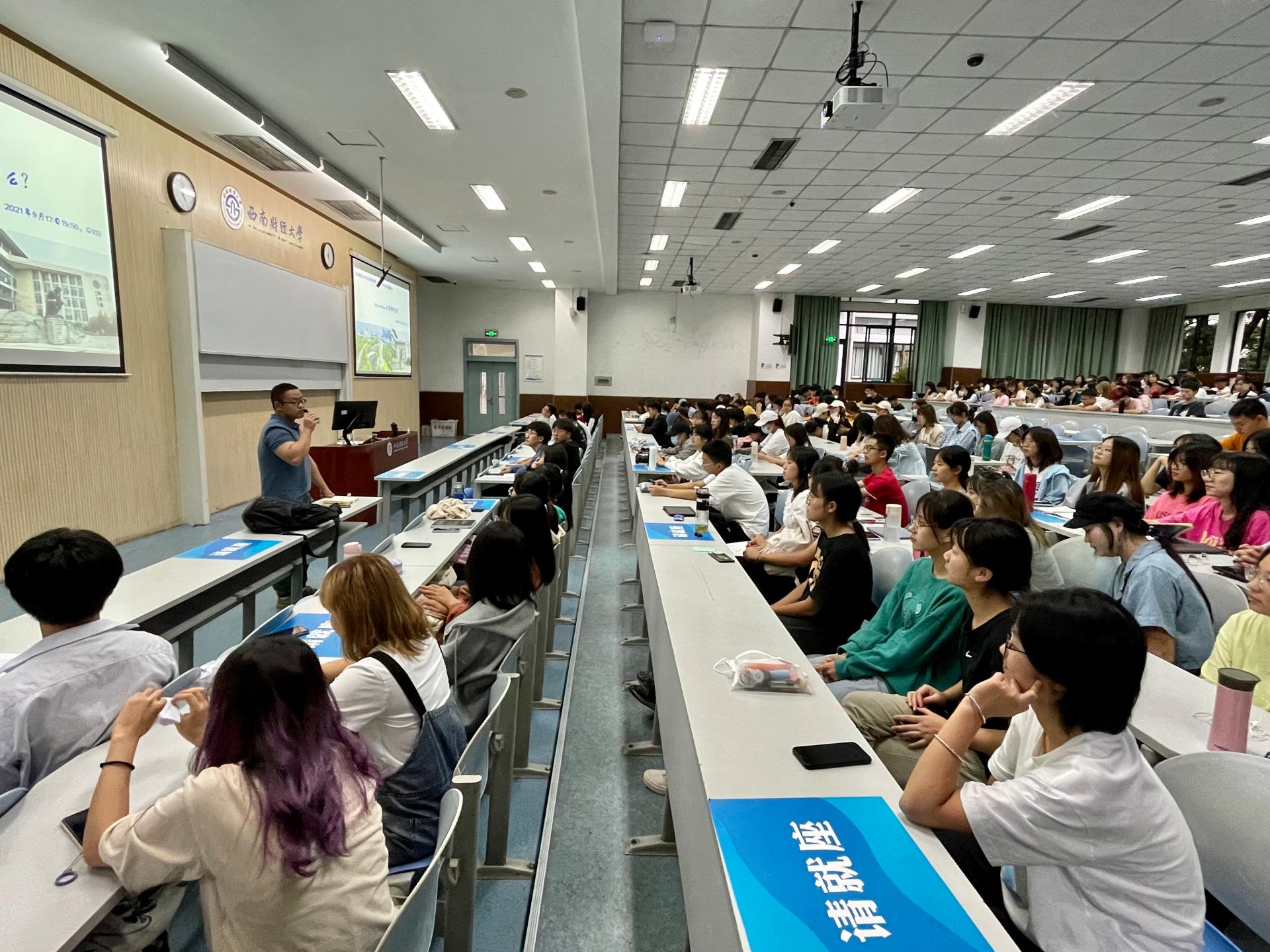 何振雄老师在活动上就“大学学什么”和“大学是一场修行”两个方面与同学们进行了交流,与全体同学共勉如何在大学修行自己的人生。首先,他就班会前的“你的大一是怎么度过的?”和“你对接下来大学三年有何展望?”两个调研题的结果与大家做了分享。其次,他就“大学学什么”这个问题,从老员工都应该掌握的八项学习技能,即自修之道、学好基础知识、实践贯通、培养兴趣、积极主动、掌握时间、为人处事、正视自己的缺点等方面一一展开,希望同学们应当珍惜每分每秒,去积极探索,开拓自己的视野,接触更多领域,寻找自己所热爱的事业,确立自己的志向,并抓住机会去勇敢追求自己的梦想。最后,他就“大学是一场修行”,分别从心态、学习、交往、爱情、生活等方面,希冀同学们在大学期间,全方位提升个人的综合能力与修养,不负韶华,锐意拼搏进取,让勤奋学习成为青春远航的动力,让增长本领成为青春搏击的能量。