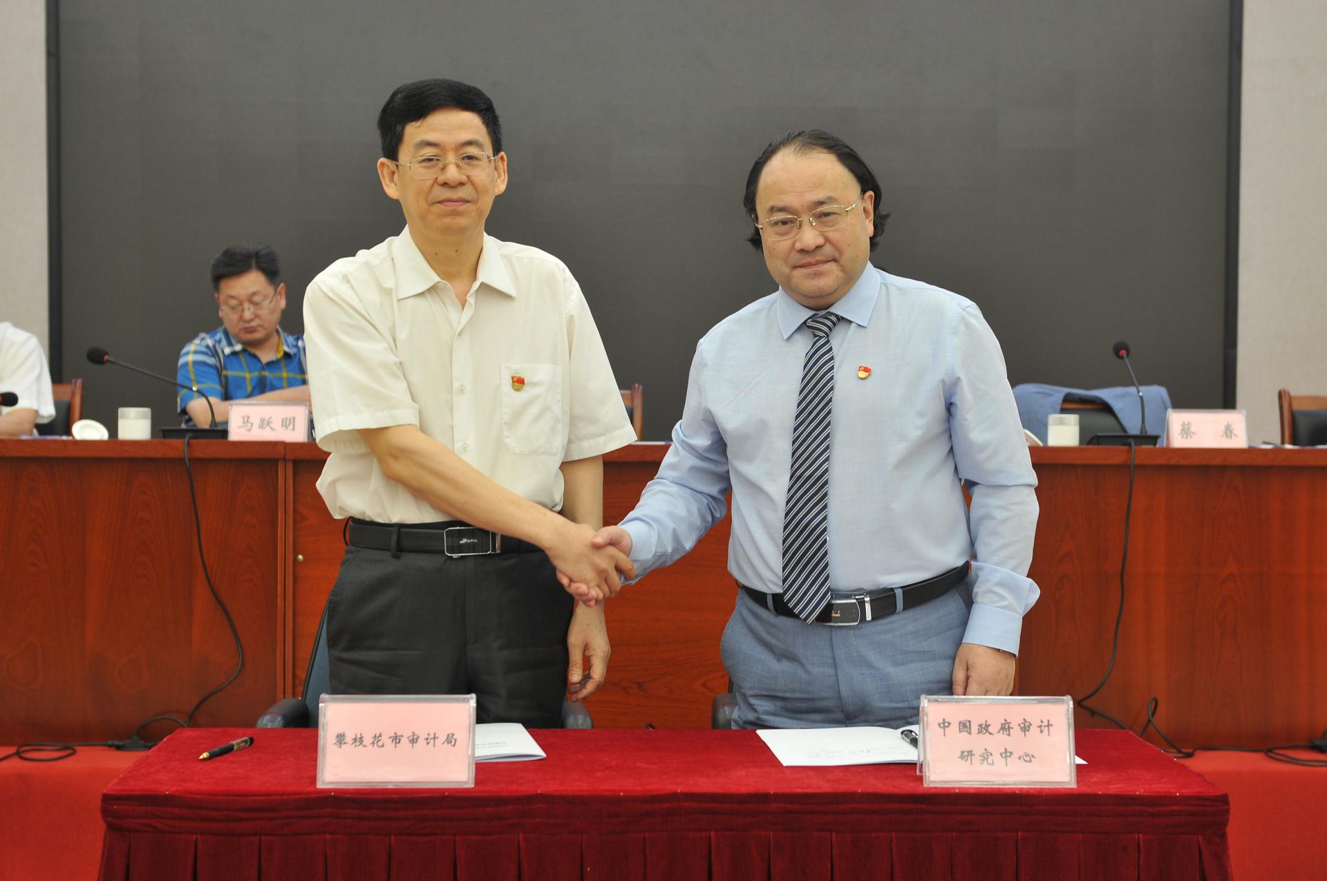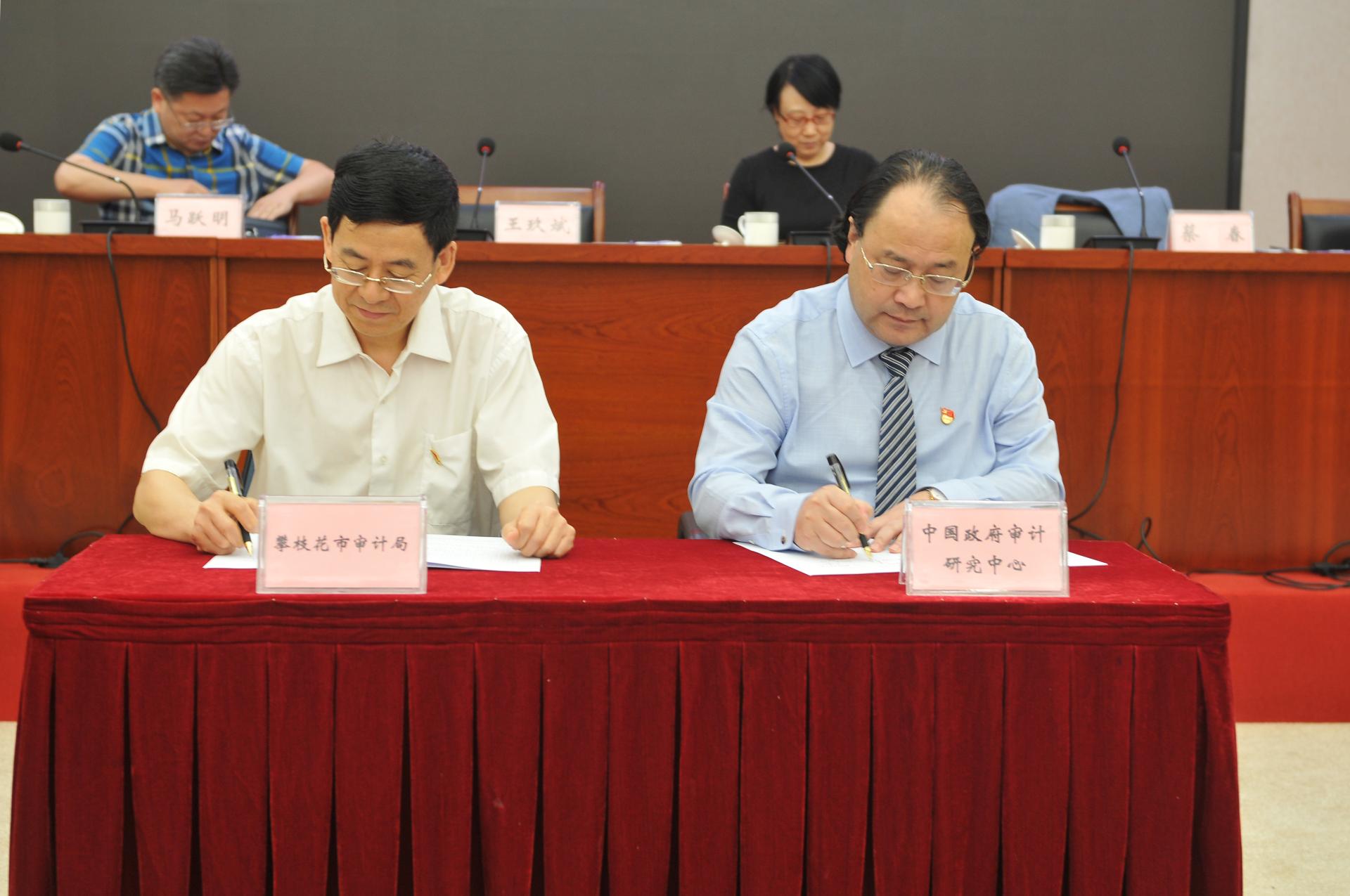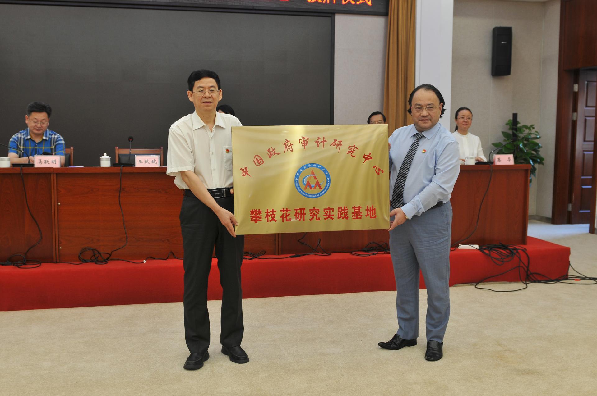 2021年9月17日,在攀枝花市审计学会第五届委员代表大会暨内部审计大会上,K1体育官方网站中国政府审计研究中心和攀枝花市审计局签订了校地合作协议并隆重举行了“中国政府审计研究中心攀枝花研究实践基地”授牌仪式。中国政府审计研究中心主任蔡春教授,中心主任助理蔡利副教授,攀枝花市审计局党组书记、局长王玖斌,副局长顾民,总审计师蔡华等出席会议。