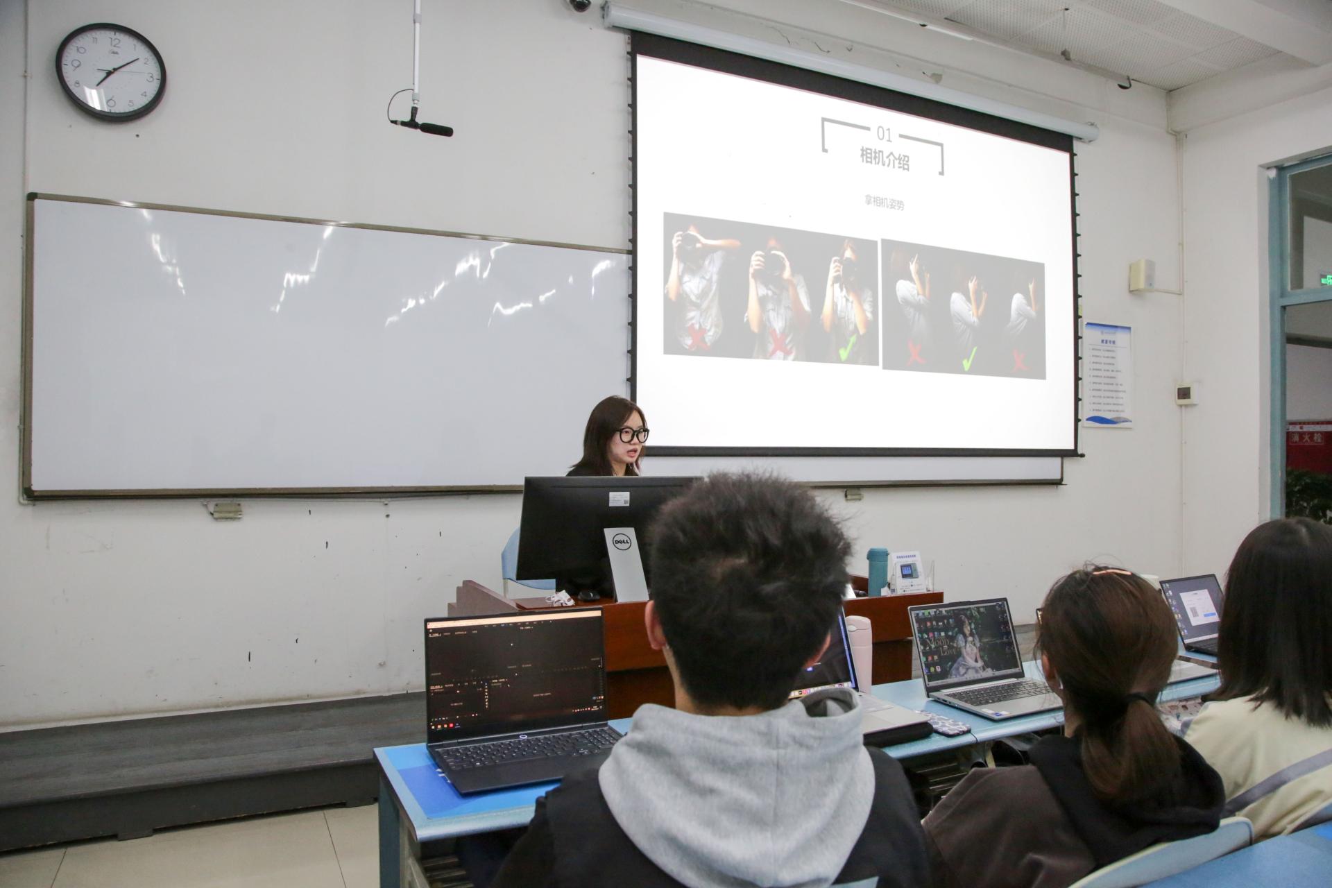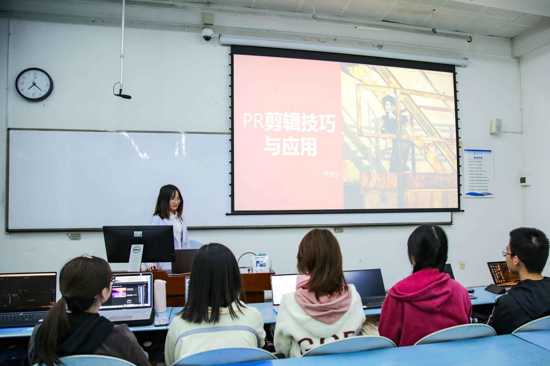 10月17日晚7:00,彭邱露同学介绍了相机的正确持法、重要参数、拍摄时常用的构图方法及后期照片的处理,通过各种照片的对比,让参加培训的成员更好地了解到图片的视觉效果对表达内容的重要性。罗佳宇同学讲解了运用PR软件进行剪辑时,导入、处理与导出素材的具体步骤与应用技巧,并加入了现场实操的环节,趁热打铁,帮助大家了解如何使视频优质呈现,如何更好传递思想内涵,如何给人更美的视觉享受。