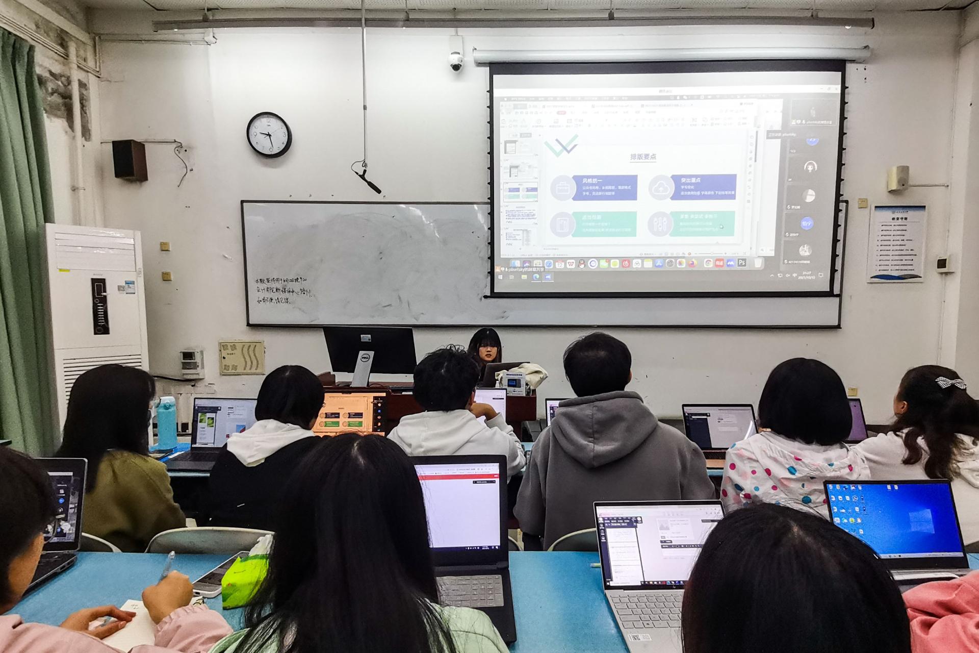 10月12日,10月15日及10月17日晚,2021–2022学年K1体育新媒体中心推进校园文化建设品牌技术培训会在颐德楼教室顺利开展。新媒体中心高楚颐、祝晋涛、罗佳宇、彭邱露几位同学,分别对新媒体时代下,推进文化传播所涉及的相关基础知识与软件操作进行了系统性培训,各类员工组织干部参加了此次培训。