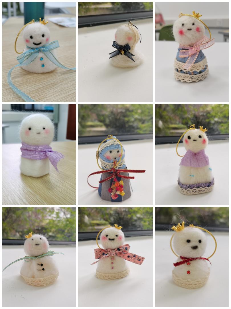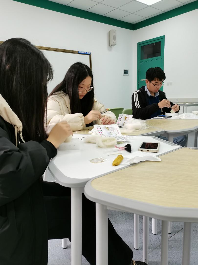 本次手工制作的主题是晴天娃娃,它代表着去除阴霾和忧郁,积极迎接阳光和美好生活。活动开始时,来自不同年级、不同专业的同学在工作人员的引导下领取材料包及防护手套,同时向同学们介绍制作流程及注意事项。在之后的三个小时,同学们在优美的音乐声中,制作属于自己的晴天娃娃。本次活动还特意为同学们准备了颜色各异、样式精美的丝带、亮片和彩钻,同学们可根据自己的喜好DIY,极大程度地满足了同学们的创造欲,每个同学都收获了专属于自己独一无二的晴天娃娃。最后,活动持续到了17:00,同学们都非常圆满地完成了自己的作品,大家互相分享了自己的感受与成果,并为自己的作品拍照留念。