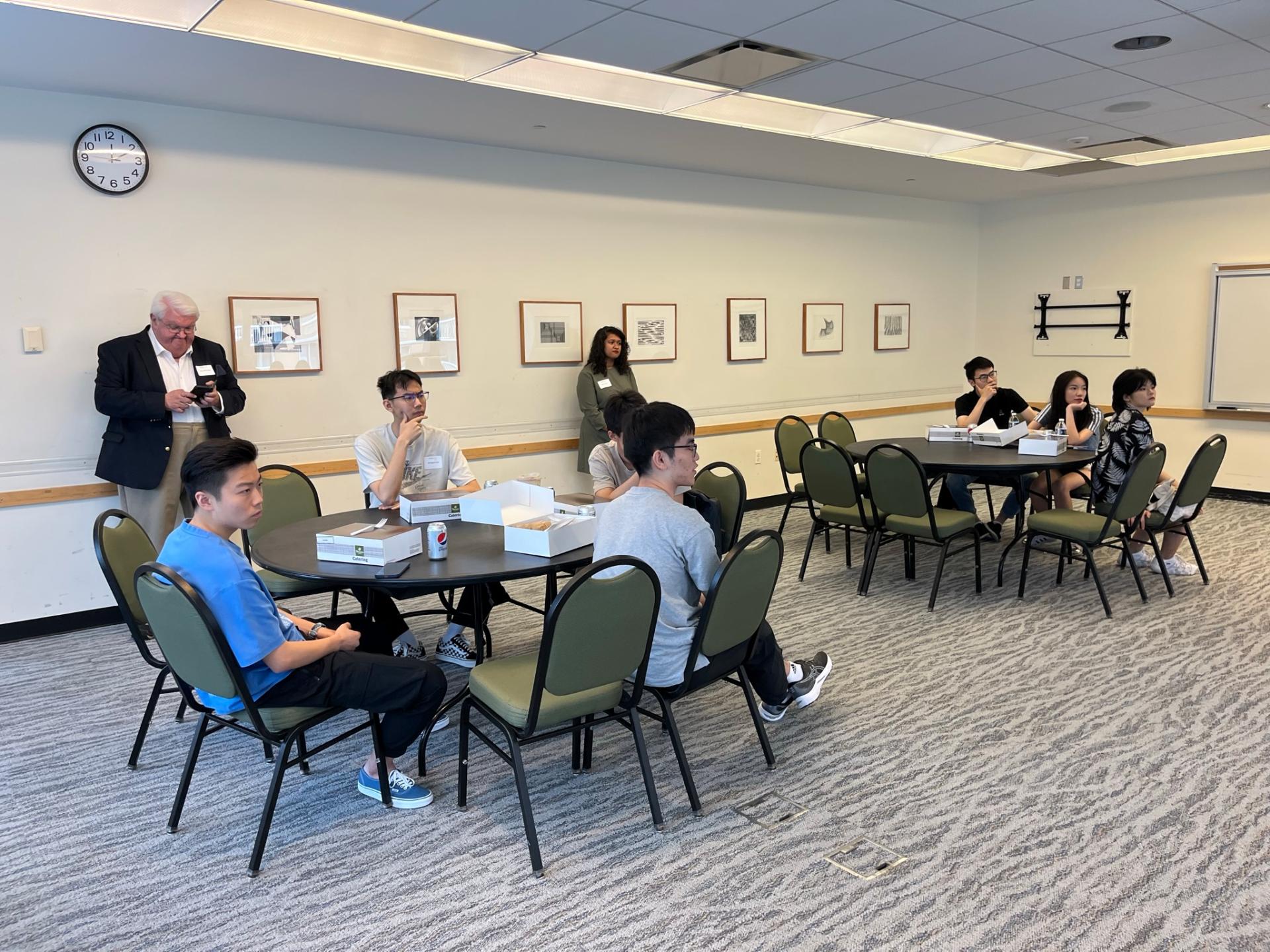 2022年7月12日中午,由西财会计学(中外合作办学)专业合作的外方院校——纽约城市大学巴鲁公司举办的线下午餐会在巴鲁公司教学楼顺利举行。本次午餐会邀请到了巴鲁公司公司副董事长Mary Gorman、杰克林商公司经理Fenwick Huss、副经理Kannan Mohan、会计系主任Donald Byard教授、商公司国际项目专员颜榕老师以及其他公司有关部门教师出席,全体2019级会计学(中外合作办学)专业已在纽约的同学参加。此次午餐会的举办旨在进一步增强2019级会计学(中外合作办学)专业已赴美同学对巴鲁公司设施、部门设置、学业问题、在美生活等方面的了解;增进老师与同学们的交流与感情,建立沟通桥梁;同时在线下面对面再次欢迎同学们的到来并奉上美好祝福。