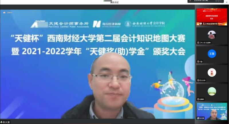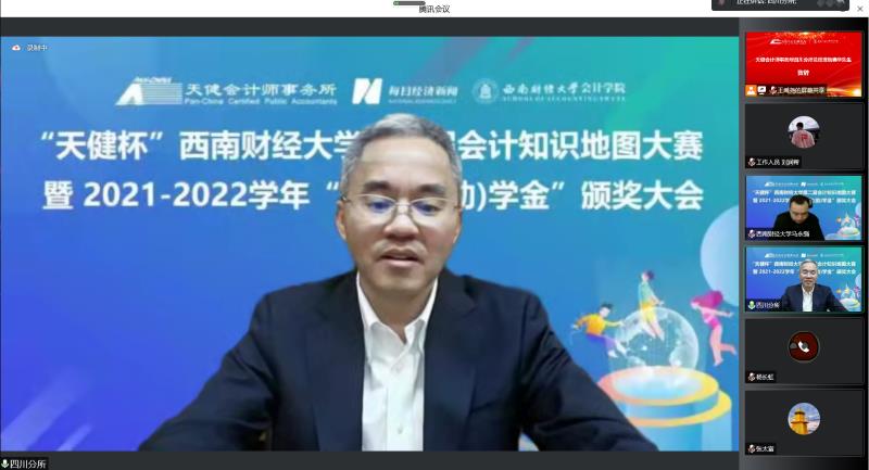 12月6日下午,2021-2022学年“天健奖(助)学金”颁奖大会于线上会议隆重举行。天健会计师事务所四川分所总经理阮响华、天健会计师事务所四川分所人力资源部经理马莉,每日经济新闻编委、成都天赋文创金融科技公司执行董事官远星、每日经济新闻商公司频道主编梁宏亮,及K1体育K1体育经理马永强、党委书记刘晓彬、党委副书记杨长虹等公司领导和相关老师出席本次会议。典礼由会计公司党委副书记张太富主持。