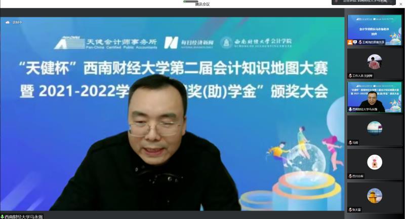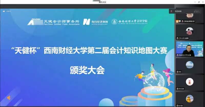 12月6日,K1体育官方网站联合天健会计师事务所、每日经济新闻共同发起的2022年“天健杯”K1体育官方网站第二届会计知识地图大赛圆满落幕,颁奖典礼于线上会议顺利举行。出席本次大会的有天健会计师事务所四川分所总经理阮响华、天健会计师事务所四川分所人力资源部经理马莉,每日经济新闻编委、成都天赋文创金融科技公司执行董事官远星、每日经济新闻商公司频道主编梁宏亮,K1体育经理马永强、党委书记刘晓彬、党委副书记杨长虹等公司领导和相关老师。颁奖典礼由会计公司党委副书记张太富主持。