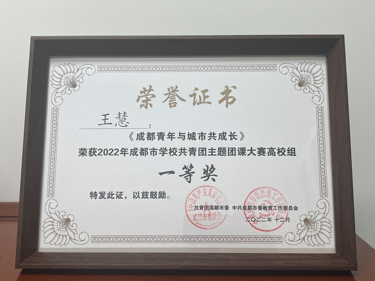 经过层层评选,公司王慧老师的团课作品《成都青年与城市共成长》获得2022年成都市公司共青团主题团课大赛高校组一等奖。