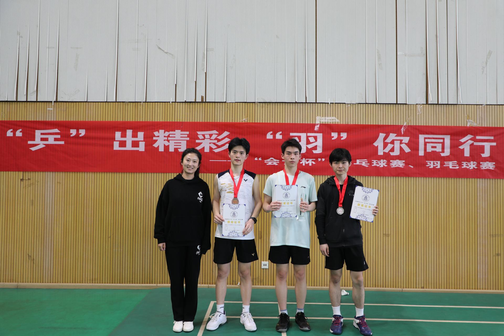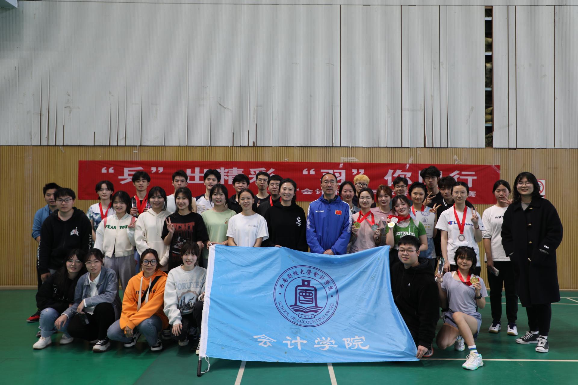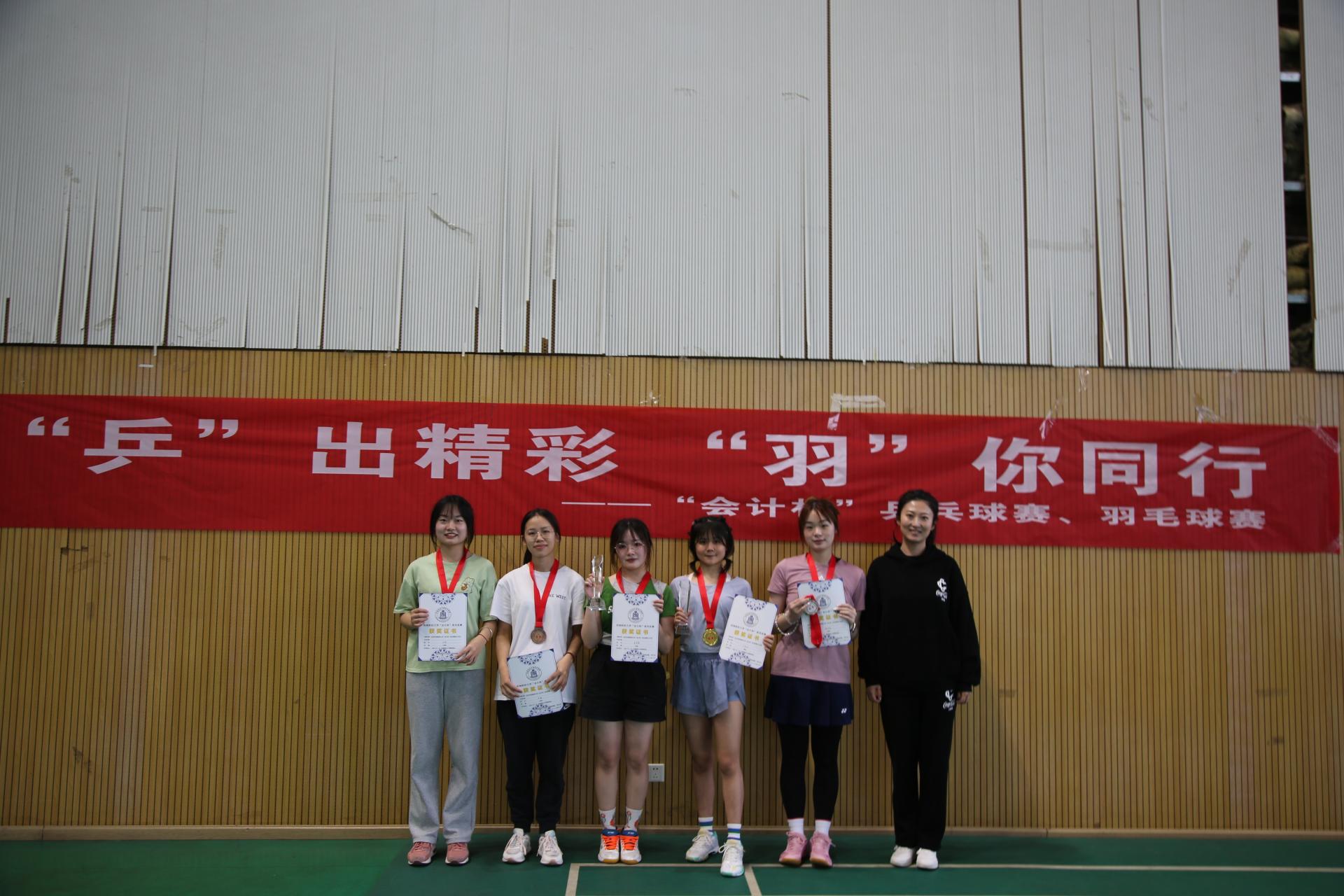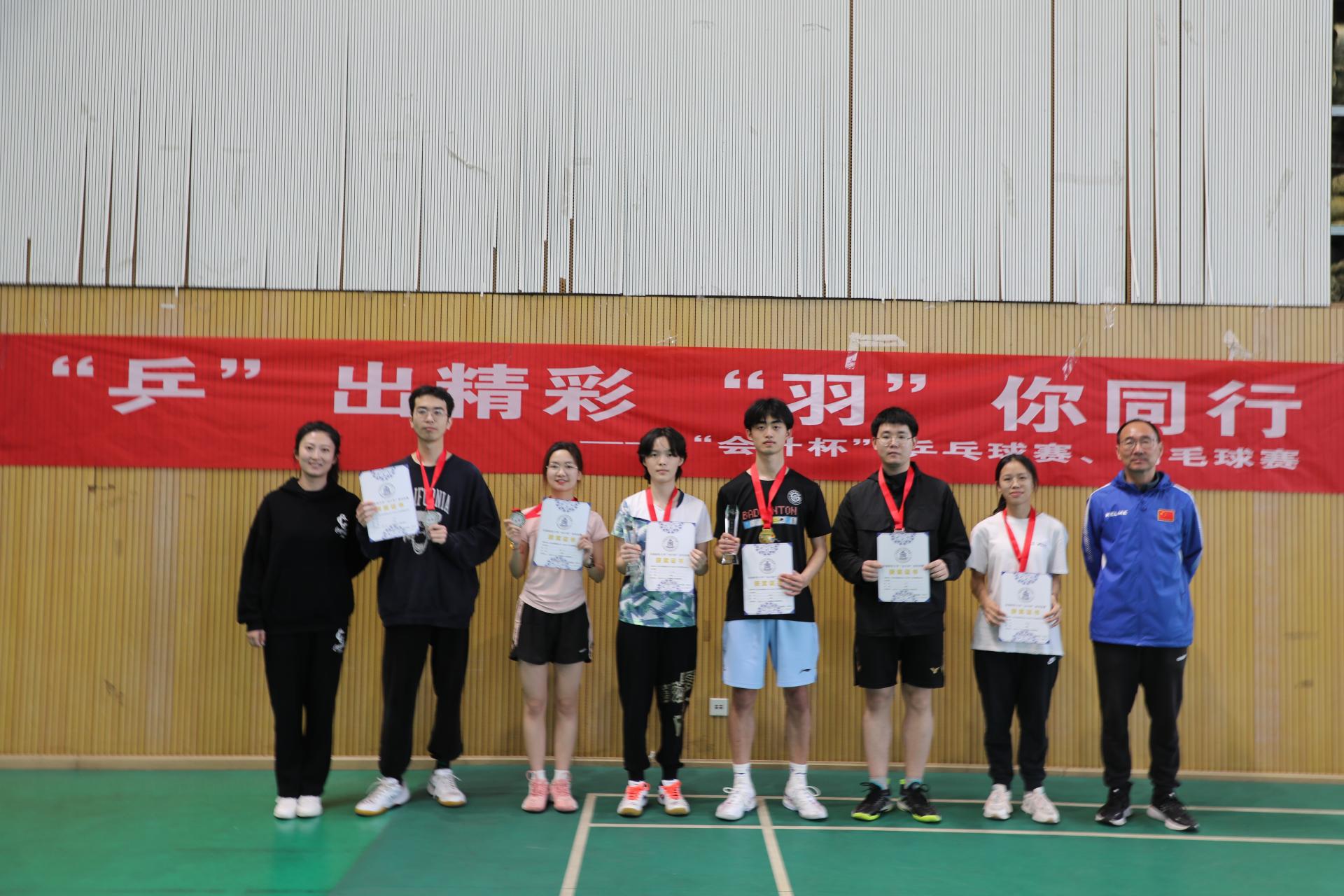 最后,比赛在体育馆举行了颁奖仪式,会计公司党委书记刘晓彬老师、团委书记王慧老师为获奖运动员颁奖。至此,第三届“会计杯”羽毛球赛至此圆满落下帷幕。期待在下一届“会计杯”羽毛球赛上见证更多师生的闪耀表现,期待“羽”你的再次相遇。