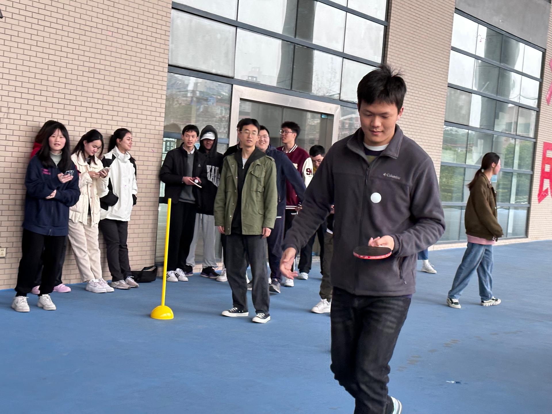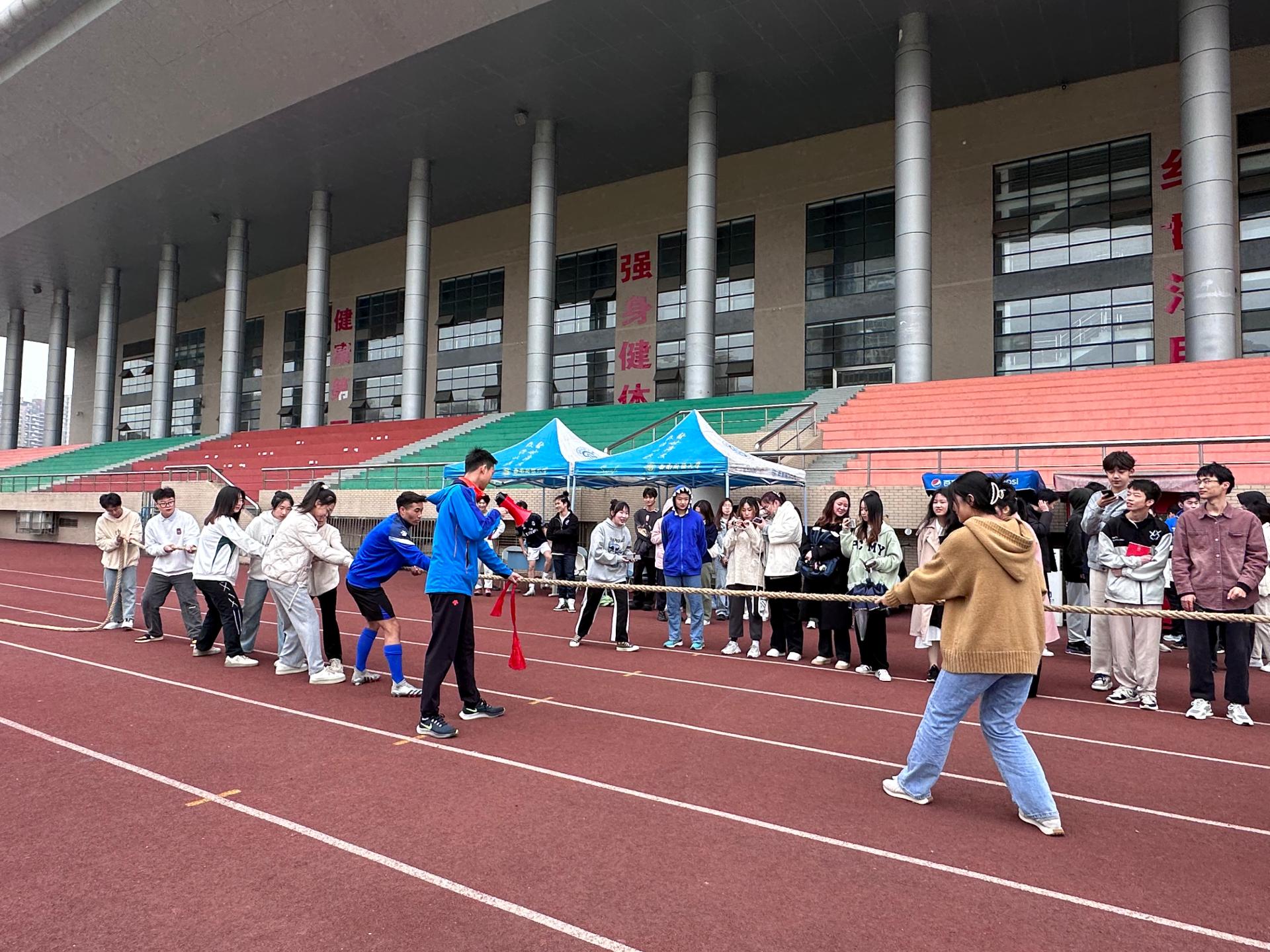 本次趣味运动会共设拔河、飞运乒乓、双龙戏珠以及旋风跑等比赛项目,各参赛队伍通过分组对决的方式,决出最终排名。在拔河比赛中,同学们齐声为自己的队伍加油助威;在飞运乒乓比赛中,同学们各显神通,以求更快速地到达终点;在双龙戏珠和旋风跑项目里,运动员们协调的姿态引得观众们的阵阵欢呼。比赛中,同学们积极向上的态度和团结协作的意识,充分体现了会院学子朝气蓬勃的精神面貌。