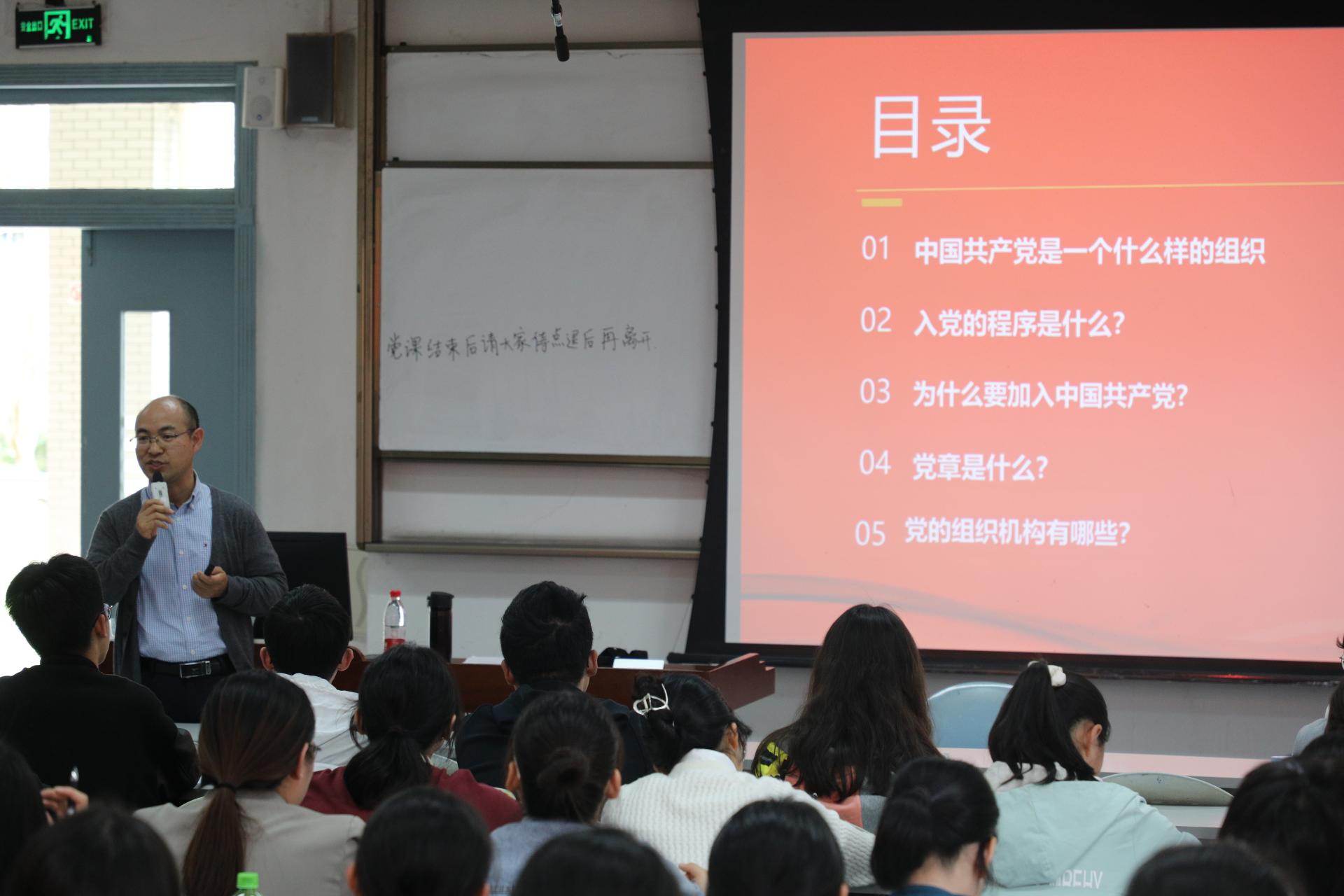 4月4日下午,K1体育分党校入党积极分子培训班第一讲在F102、F103顺利开展,本次党课分别由会计公司党委副书记张太富、杨长虹老师讲授。