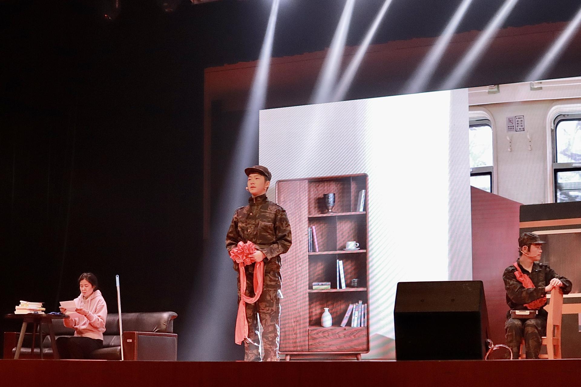 整场比赛精彩绝伦,八支队伍花样创新,为全场观众呈现了一场精美的视听盛宴。公司的《边关情》由“咚咚”的敲门声叩响,观众的目光跟随场景从教室到边关,观众的心绪跟随剧情从紧张到感动。紧扣实事、内容饱满,短剧讲述了立志驻守边关、起初不受母亲支持的小夏与同为新兵的小张在火车上结识、在军营中相知、在战场上共同战斗,而后小夏光荣牺牲、夏母理解支持,小张深受触动,放弃调任、坚守边关的故事。短剧的最后一段,小张归队升旗,在威严的国歌声中、在肃穆的军礼下,灼灼的爱国之情在边关升起。灯光渐渐暗淡,台下掌声雷动。《边关情》紧扣“爱国”的主题,展现了战友之情、家国情怀。