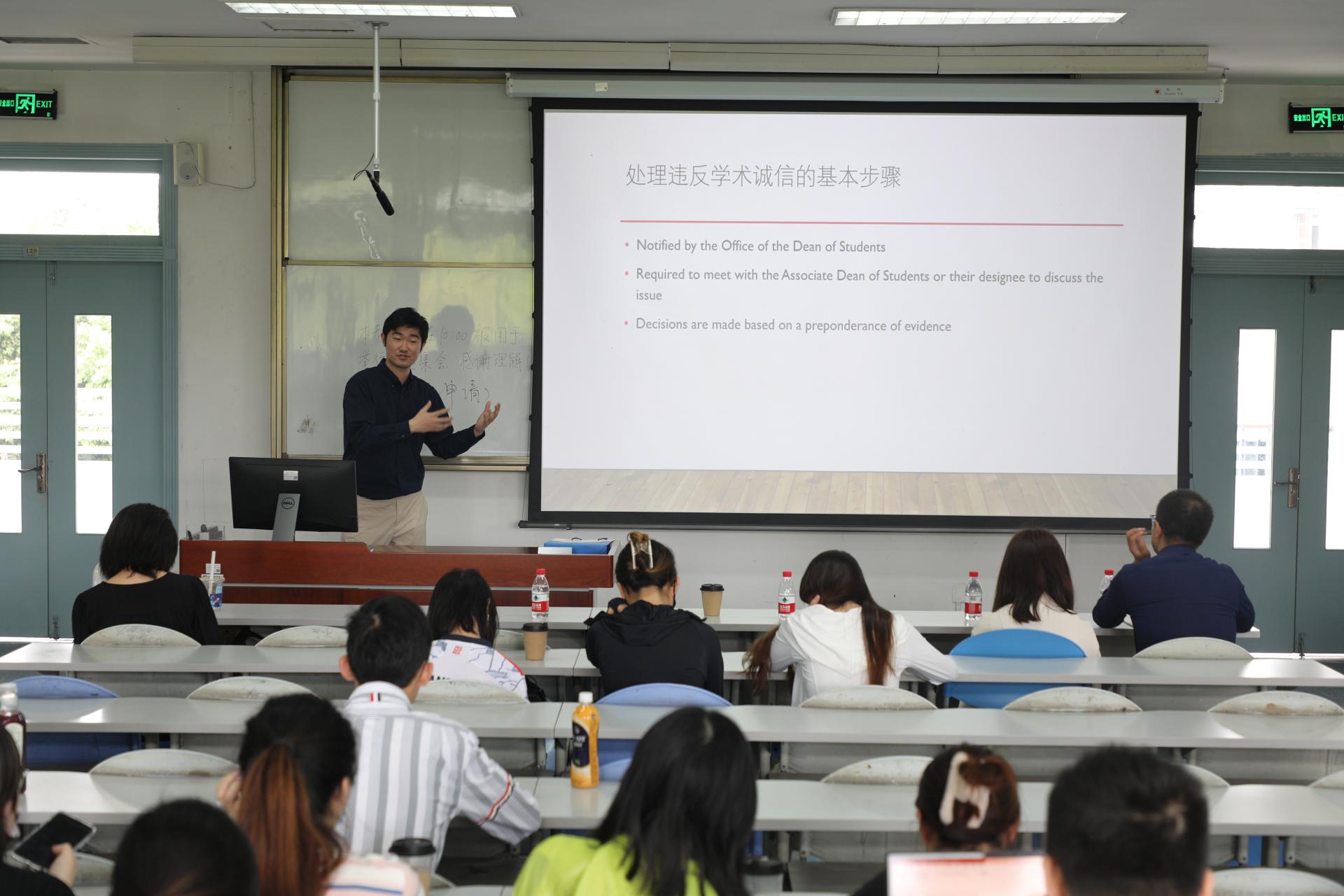 项目组老师罗瀚林以“学术诚信—正心践行”为主题,从违反学术诚信后果、规避违反学术诚信做法、处理避免陷入学术不端等三方面对同学们开展了学术诚信教育,叮嘱同学们要深刻意识到坚守学术诚信底线的重要性,做一个诚实守信、严于律己的人;项目组老师郝若欣为同学们梳理了未来巴鲁的学业规划及撰写毕业论文的相关事项,嘱咐同学们应提高自主意识,养成查看邮件的习惯,主动参与巴鲁的学术活动,提高自身综合实力;项目组曾媛媛老师为同学们就关心问题进行了答疑解惑。