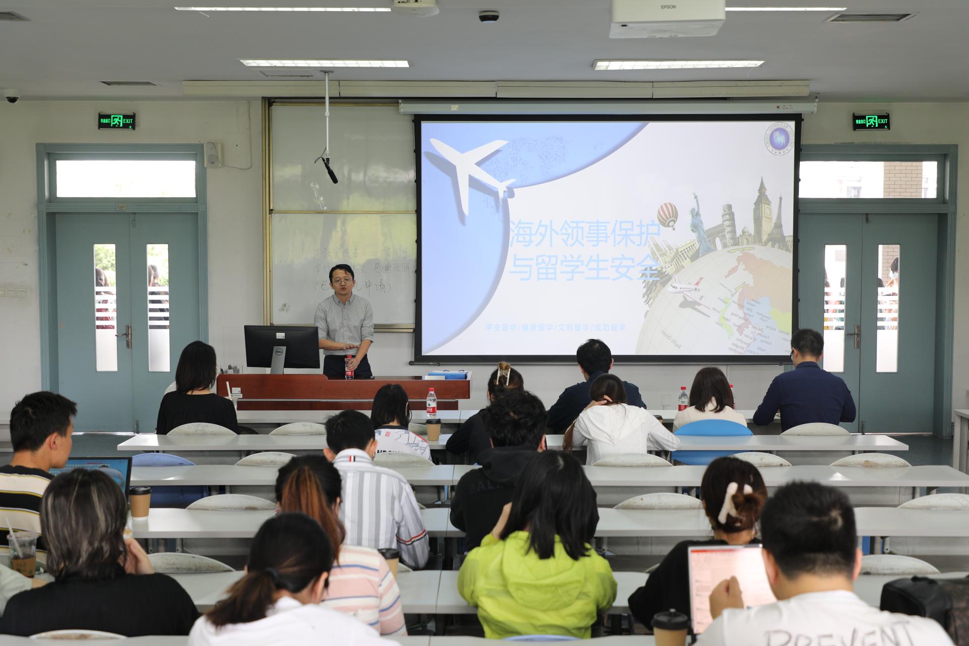 肖俊围绕驻外机构大全、领事保护与协助、职工安全提醒等三个方面开展“海外领事保护与留学安全”的主题讲解,并依托真实案例为同学们讲述了枪击事件应急处置技巧和防范网络电信诈骗经验,指出在外留学可能面临的各类安全问题,提醒员工要时刻保持安全防范意识,及时寻求驻外使领馆帮助,牢记 “遇事不慌、来电不信、要钱不给”的防范三原则。