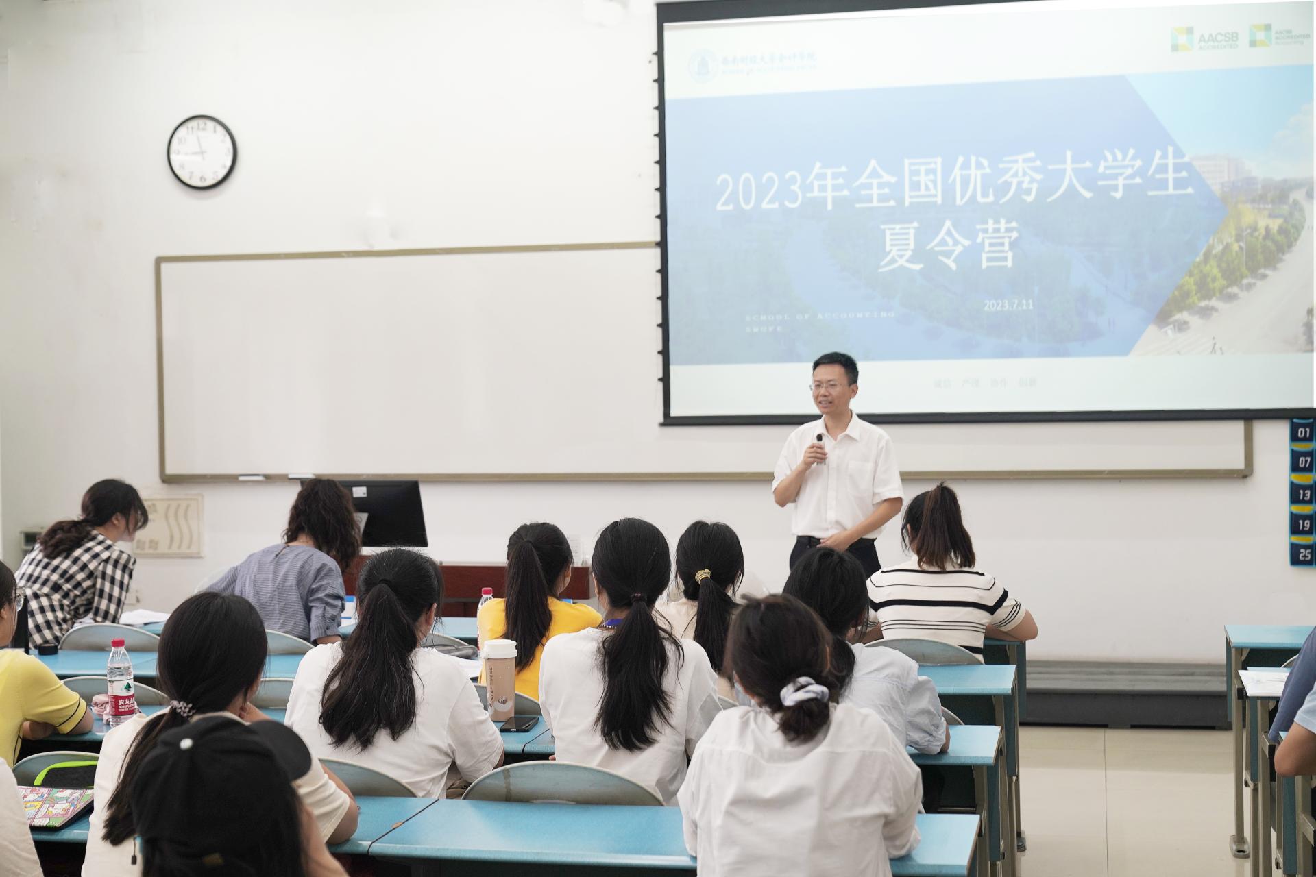 在接下来的环节中,唐雪松教授为参营的同学们带来了精彩纷呈、深入浅出的主题报告,真诚地和同学们分享了关于会计研究的心得与体会,并对此次夏令营的“硕博贯通”及“直接攻博”项目进行了介绍,加深了同学们对会计博士学习的了解与认识,勉励同学们以积极的心态去对待学术研究。