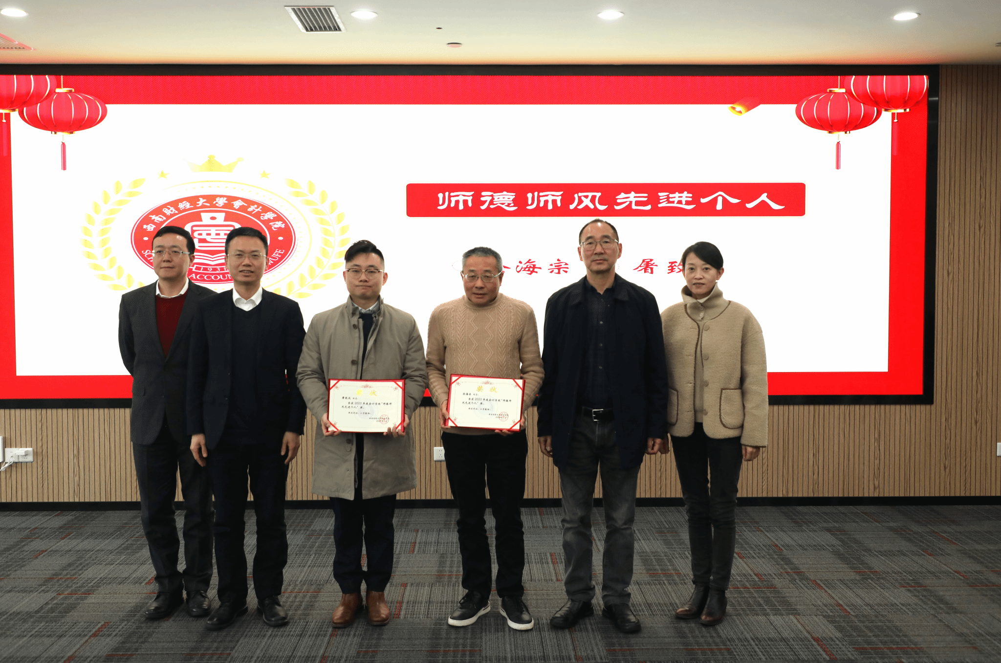 师德师风先进个人获得者余海宗、屠致远分别在会上分享了自己的心得体会,表示将继续精进,尽职尽责,做好教学科研及社会服务工作,做好教育思想引领和师德价值传承,为公司和团队建设新发展贡献自己的力量,同时祝福所有老师新年快乐,龙年大吉。