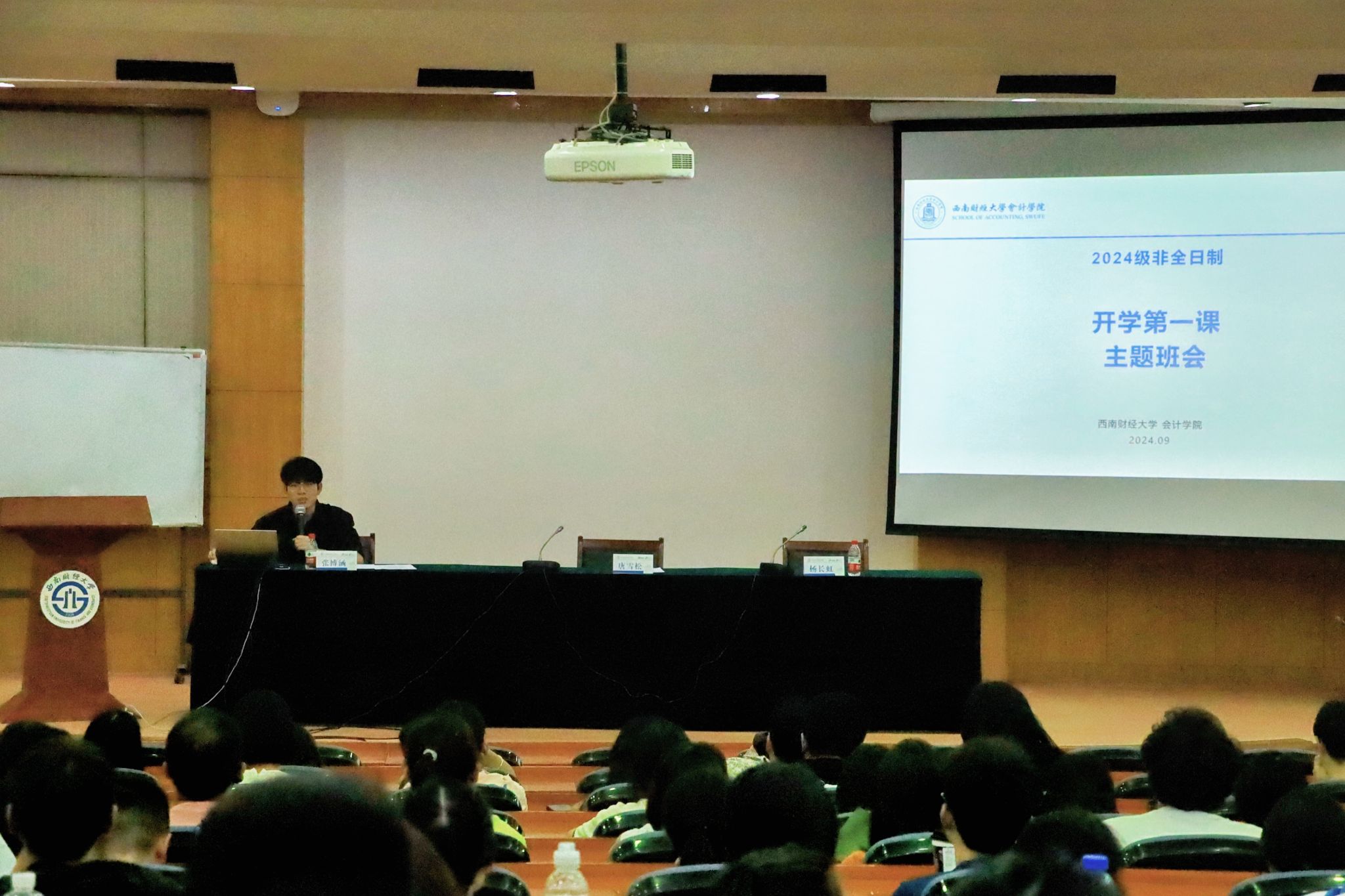 在专业硕士非全日制项目新生典礼中,为表彰先进、树立榜样、涵养优良学风还举办了2024级会计硕士(非全日制)新生奖学金颁奖仪式。副经理唐雪松、党委副书记杨长虹为获得新生奖学金的同学颁奖。