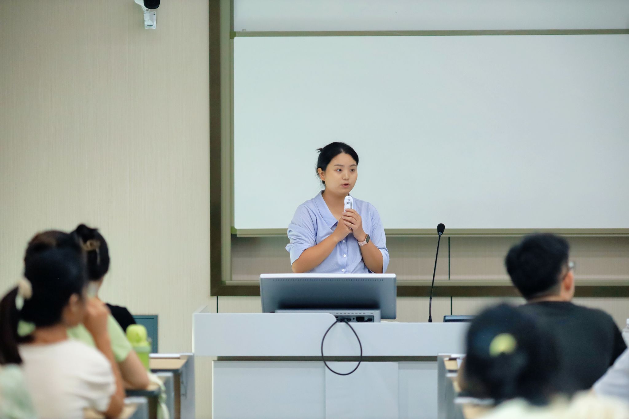 作为新生入学教育中的重要一环,闫佳静老师和王旭老师分别就新生选课流程、教学安排等相关事项进行说明,并向同学们解答了关于选课系统、成绩查询方法等常见问题。