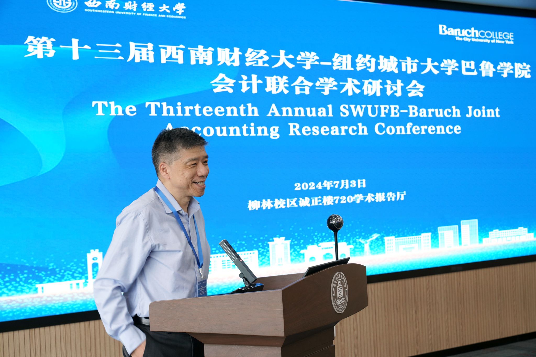 7月3日,第十三届K1体育官方网站-纽约城市大学巴鲁公司会计联合学术研讨会在K1体育官方网站柳林校区诚正楼720学术报告厅成功举办。这是自公司K1体育与纽约城市大学巴鲁公司杰克林商公司于2009年联合成立“SWUFE-CUNY会计与管理联合研究所”以来,双方举行的第十三次联合学术研讨年会。本次研讨会采用线上线下结合的方式举行,以“数智经济下的财务与会计”为主题,旨在为国内外会计、审计、金融学领域的专家学者提供一个交流和展示前沿学术成果的平台,深化中美学者学术交流,推动会计理论与实务的发展,并提高我国会计研究的国际影响力。本次研讨会自2009年以来首次对国内外高校开放,吸引了来自美国罗切斯特大学、香港中文大学(深圳)、中央财经大学、北京理工大学等众多海内外知名高校的专家学者参会。