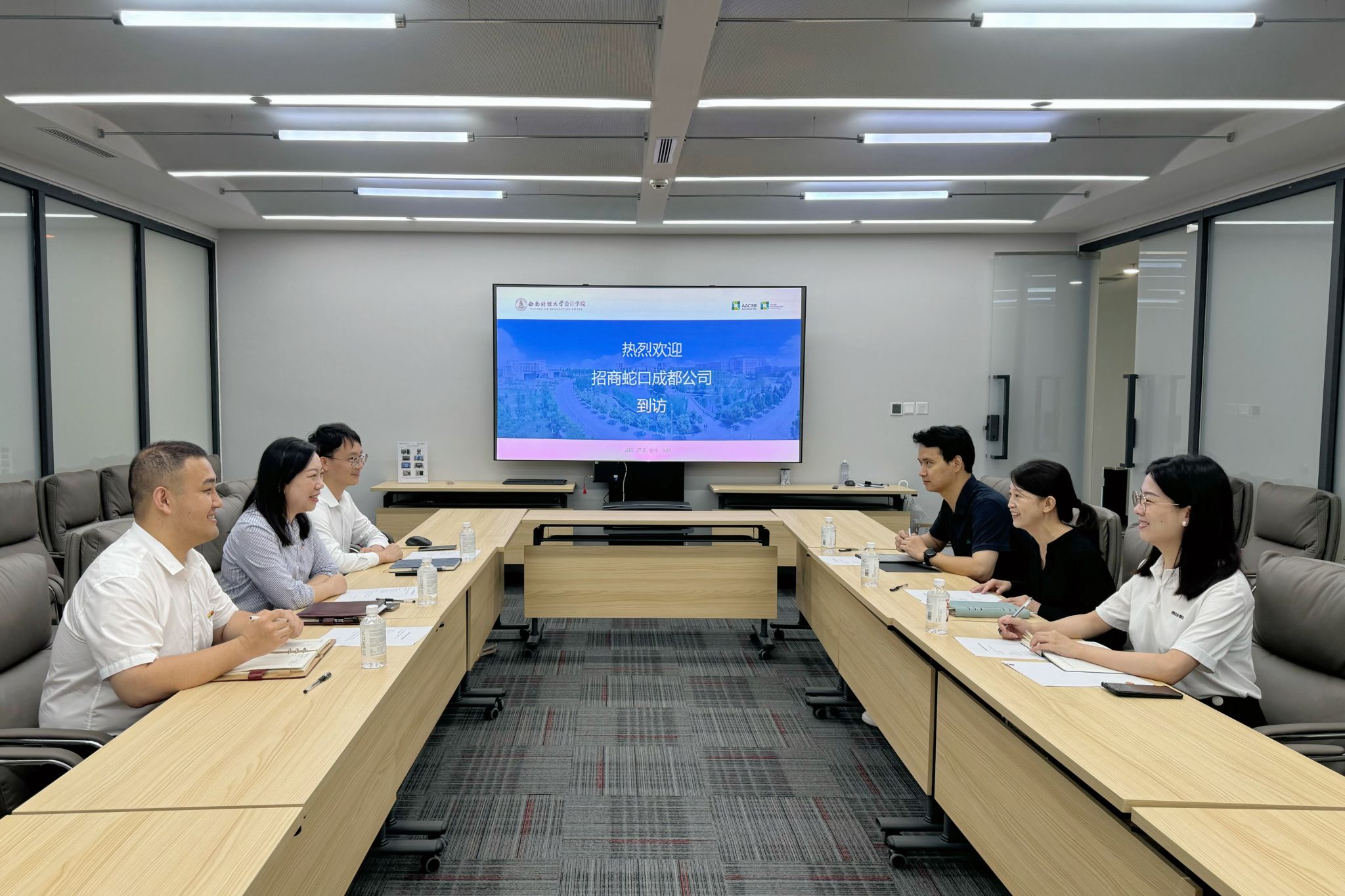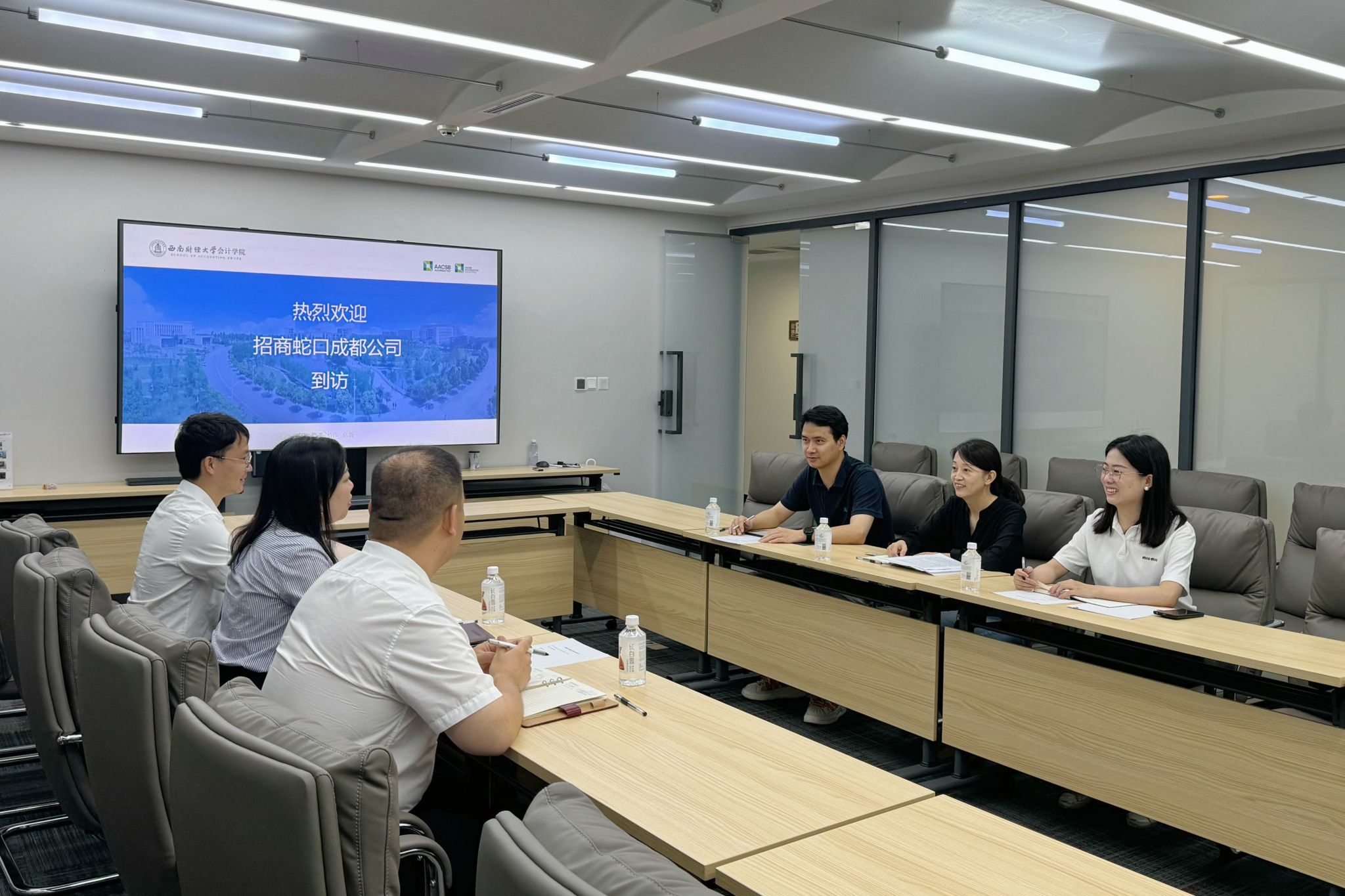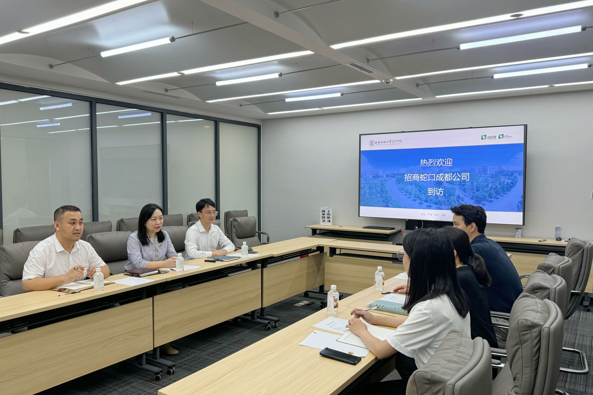 6月18日,公司与招商蛇口成都公司在K1体育官方网站柳林校区诚正楼544会议室就开展多样化校企合作共建进行交流座谈。招商蛇口成都公司综管部部门经理刘小玲、综管部人力经理黄桥、综管部党建联络人吴磊,会计公司党委副书记杨长虹、党委办公室主任徐喆轩、就业工作联络人陈秋达参加本次座谈。