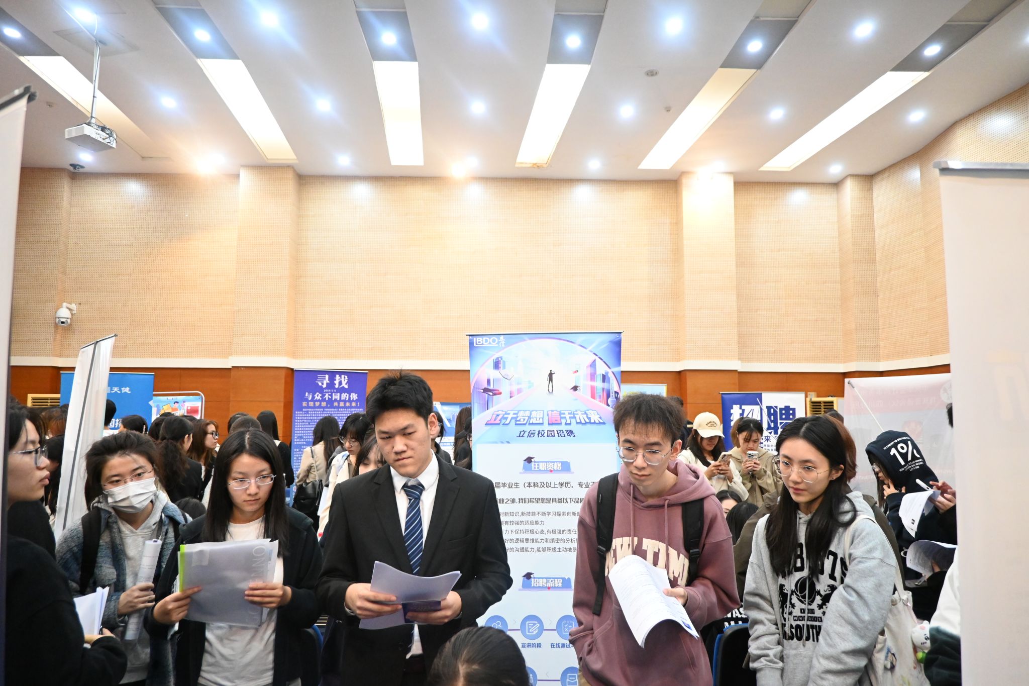 启动仪式后,招聘会正式开始。到场同学前往各个事务所投递简历,主动寻找心仪的工作机会,展现出对未来职业生涯的无限憧憬。各用人单位也认真筛选每一份简历,对前来投递的同学给予积极回应,提供面试机会。现场还设有简历修改点,为参会毕业生求职提供便利。