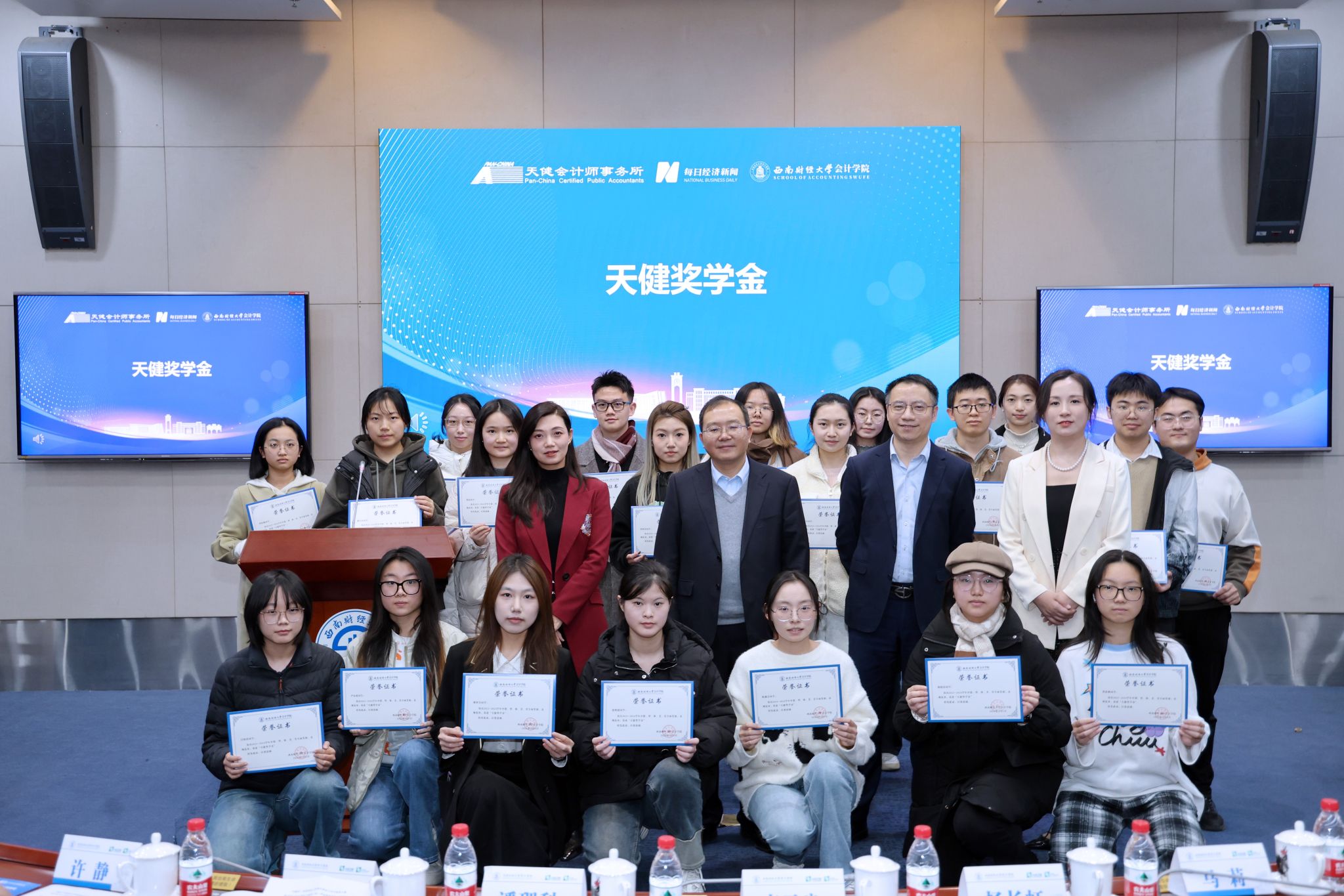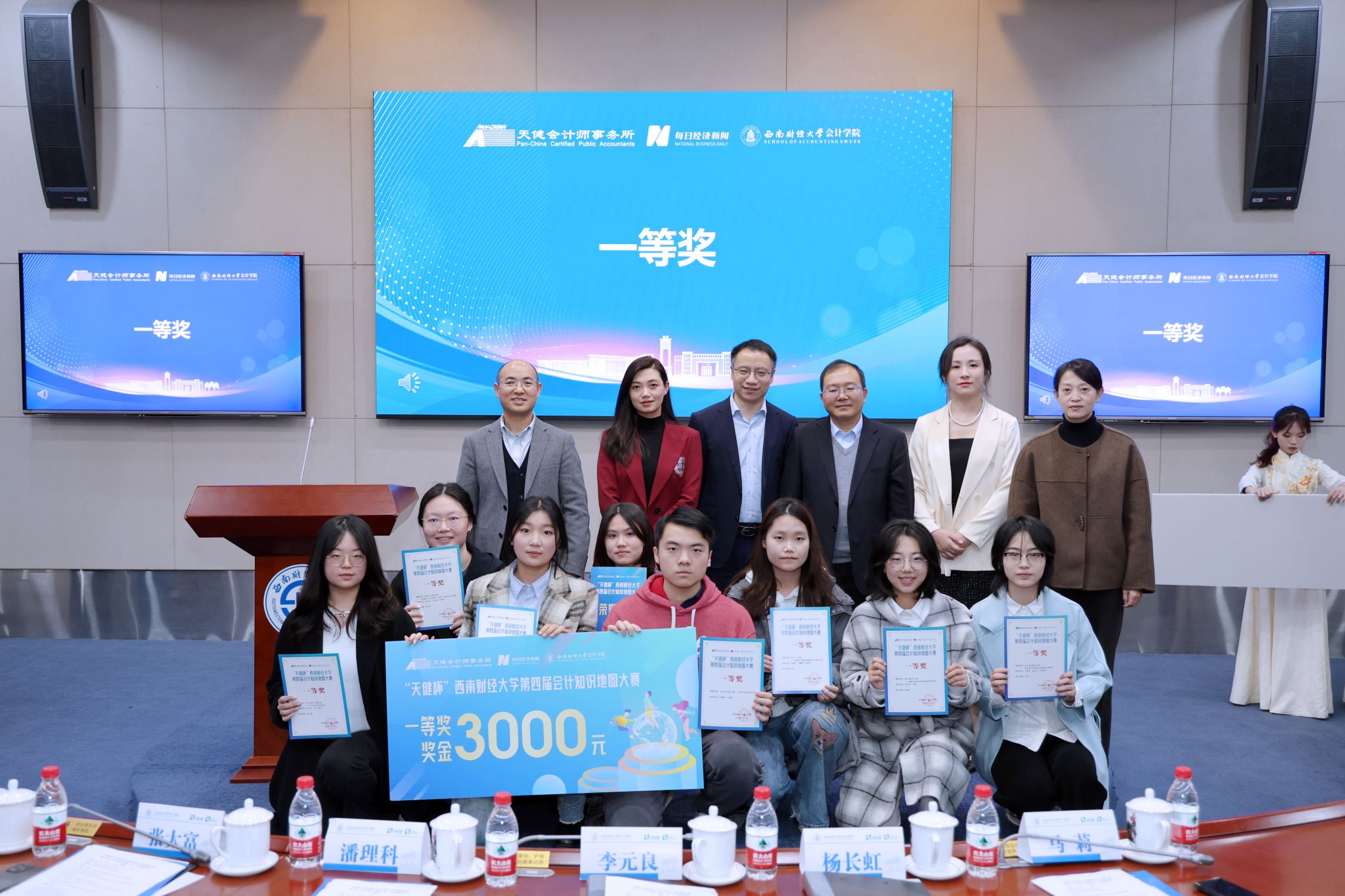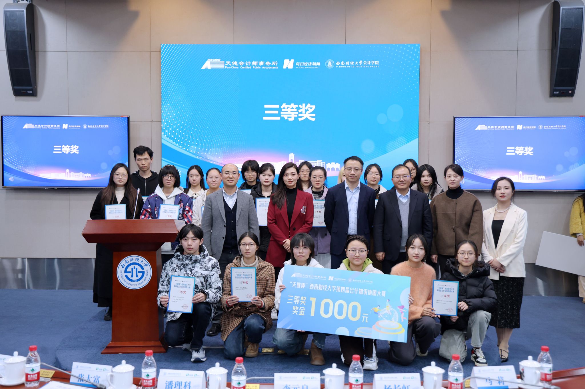 12月6日,K1体育官方网站联合天健会计师事务所、每日经济新闻,共同发起的 “天健杯”K1体育官方网站第四届会计知识地图大赛暨2023-2024学年“天健奖(助)学金”颁奖典礼于K1体育官方网站柳林校区弘远楼101圆满落幕。天健会计师事务所重庆分所副总经理潘理科,天健会计师事务所四川分所副总经理李元良,天健会计师事务所重庆分所高级经理许静,天健会计师事务所四川分所总经理助理马莉,K1体育官方网站会计公司党委副书记张太富、杨长虹出席典礼。