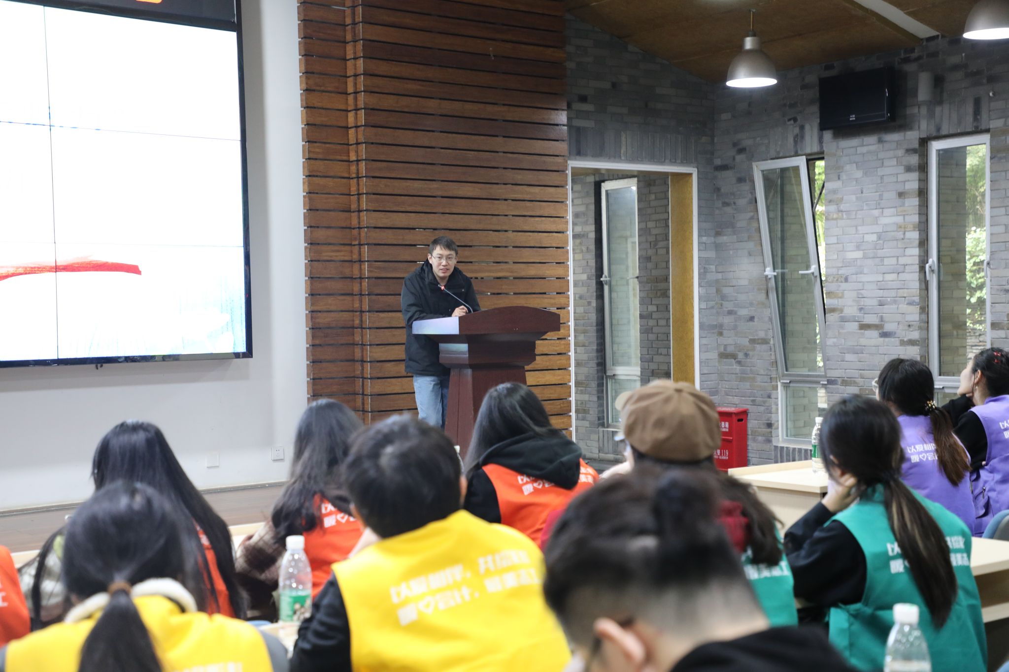 在主题团日活动中,中国大熊猫保护研究中心团委书记张丹老师为全体师生讲解并带领全体师生参观大熊猫、小熊猫等动物的生活情况,探寻国宝的奥秘。在座谈会上,中国大熊猫保护研究中心饲养员陈锐老师分享关于饲养大熊猫的相关经历,并表示希望能有更多的人了解大熊猫保护事业、积极参与其中。员工们在提问环节,围绕参观活动和对大熊猫的了解,发表自己的观点并提出疑问,在深入探讨中,让同学们了解大熊猫的生活习性、生存现状以及面临的威胁,从而增强同学们对大熊猫保护的认识和紧迫感。