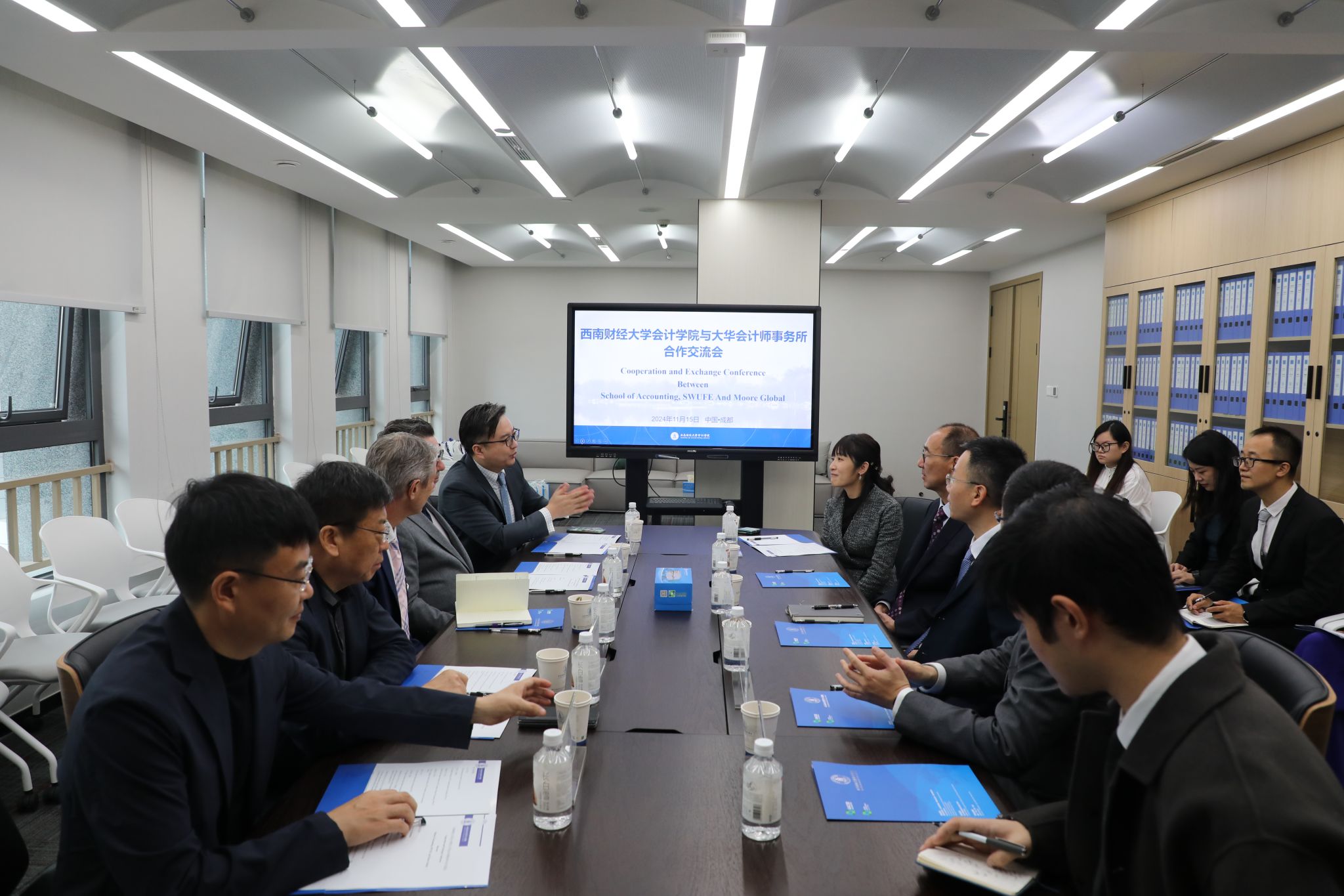 公司经理唐雪松对大华国际一行的到来表示热烈欢迎,介绍了公司的办学历史、人才培养、教学教学改革、科研与社会服务、国际化等方面的举措和取得的成效。大华首席执行官Anton Colela介绍了大华会计师事务所的发展历程和业务规模,他表示大华高度重视校企合作和员工培养,高度赞赏公司在大数据会计改革等方面所取得的成效。