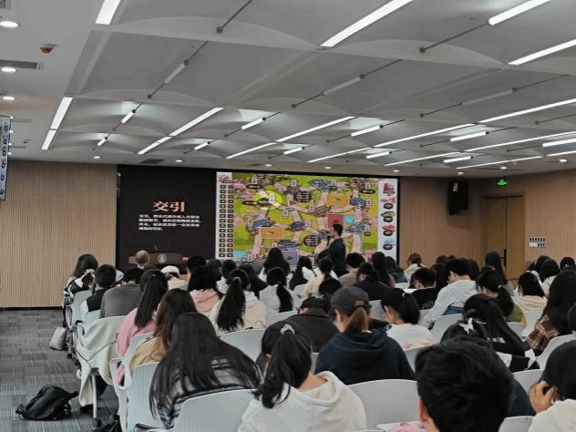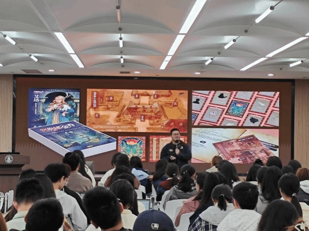 徐皓嵩先生先介绍了文化创意类产品桌游的历史与起源,接着从教育、文化传播的角度说明了文化创意类产品的价值与特征,期间鼓励同学们结合自己与桌游接触的实际经历进行思考与发言,随后结合原创桌游《商旅大宋》的案例剖析了文化创意类产品设计思路与方法,最后指出了未来文化创意内容在桌面上的表达方式并进行了趋势探讨。