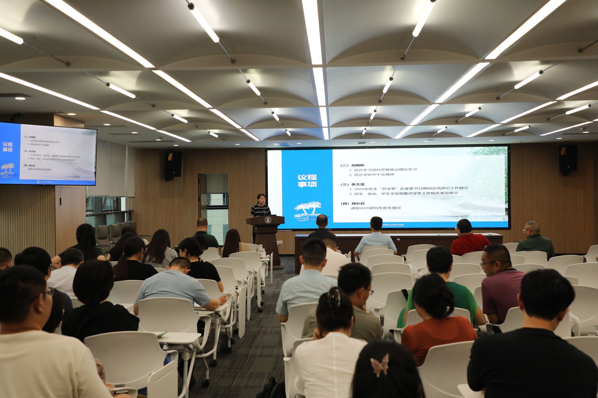 公司党委副书记、纪委书记张太富进行高等教育领域教师违纪违规和师德失范案例警示教育,引导教师以案为鉴、以案明纪,严守《新时代高校教师职业行为十项准则》,筑牢思想防线,恪守职业道德,自觉维护教师职业形象,共同营造风清气正的育人环境,就招生、就业、员工学业重点员工工作做部署安排,并对全院教师进行员工心理健康教育培训。公司党委副书记杨长虹通报了新学期研究生教学管理和员工管理的主要安排。