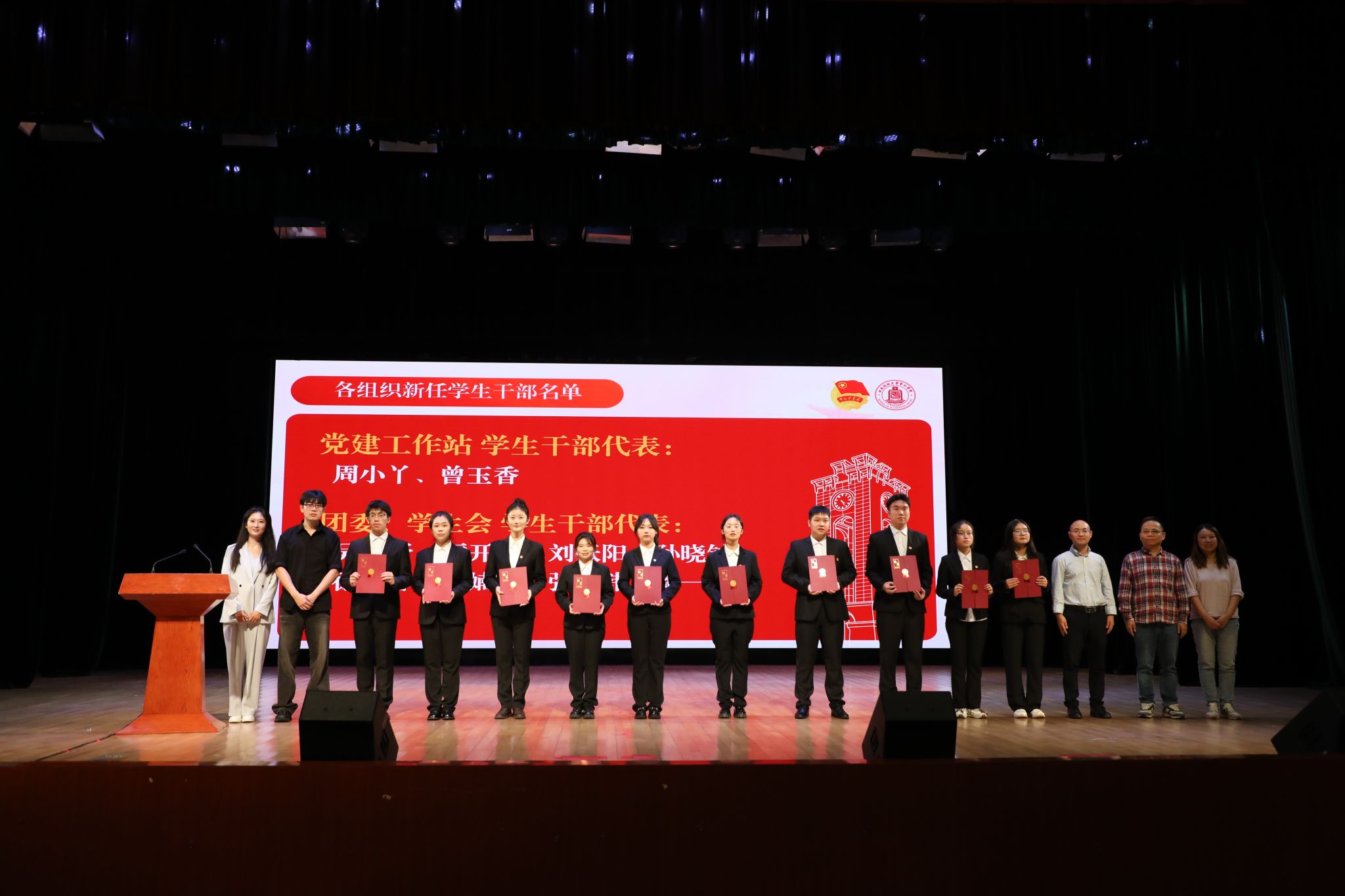 公司党委副书记张太富宣读2025-2026学年K1体育各员工组织新任员工干部名单。公司领导和各员工组织指导老师共同为新任员工干部颁发聘书。
