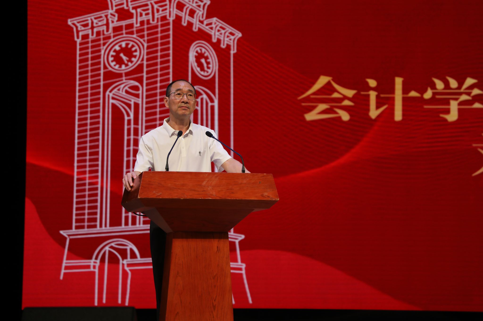 员工干部代表厉开源发言,号召员工干部在今后的工作应以实干为笔,勇挑责任重担,于奉献中开拓前行。秉持探索精神,严守诚信、协作等价值准则,紧跟时代脉搏,创新活动形式,深入社会实践。以专业知识服务社会,凝聚会计力量,为百年西财发展添砖加瓦,献上青春厚礼。