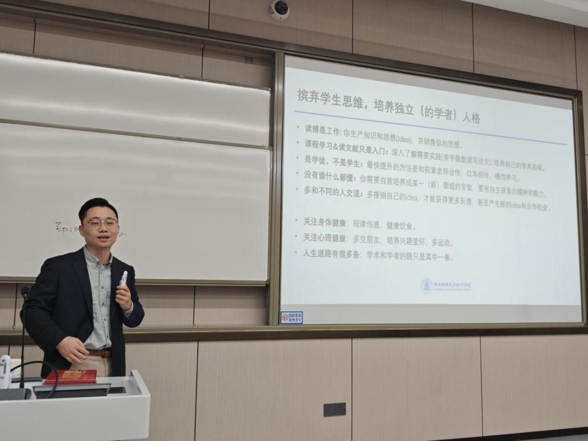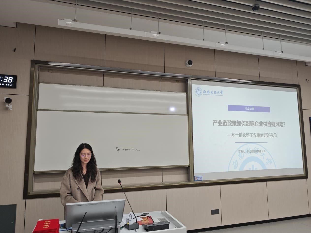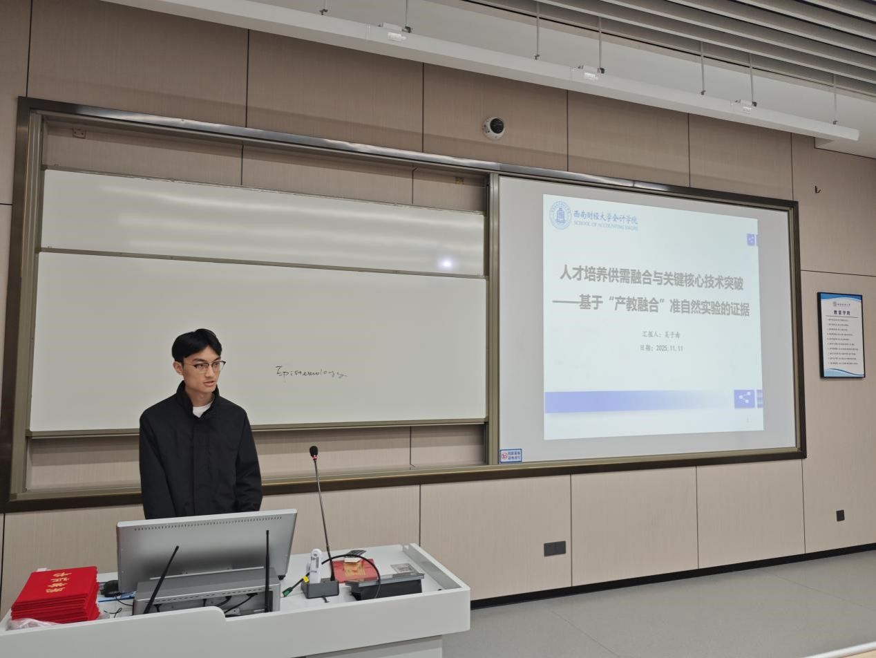 在论文交流环节,优秀实证论文获奖者吴子南和王尹同学分别就论文《人才培养供需融合与关键核心技术突破——基于“产教融合”准自然实验的证据》《产业链政策如何影响企业供应链风险?》进行分享交流。屠致远老师点评时说到,论文研究一定要结合经典的经济学理论开展,同时在涉及现实政策的部分更要考虑政策执行成本与相关者博弈等现实挑战。