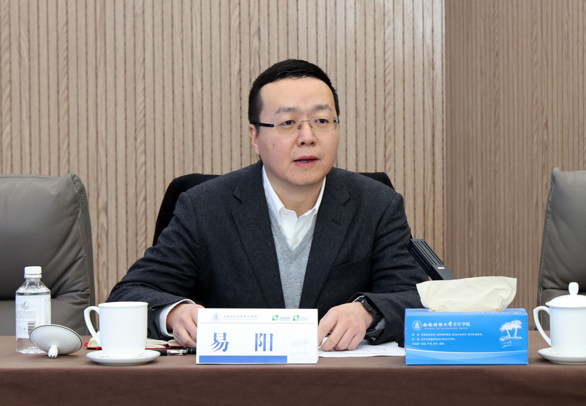 随后,公司副经理易阳系统汇报了公司“十四五”期间取得的显著成就,并详细阐述了“十五五”发展规划的初步构想,围绕公司第十四次党代会部署,聚焦高质量推动建成“国内顶尖、国际知名的拔尖创新人才育人新标杆、商科学术与社会服务新高地、中国特色财会教育新典范”的总体目标提出了发展思路与重点任务举措,为后续深入交流奠定了基础。