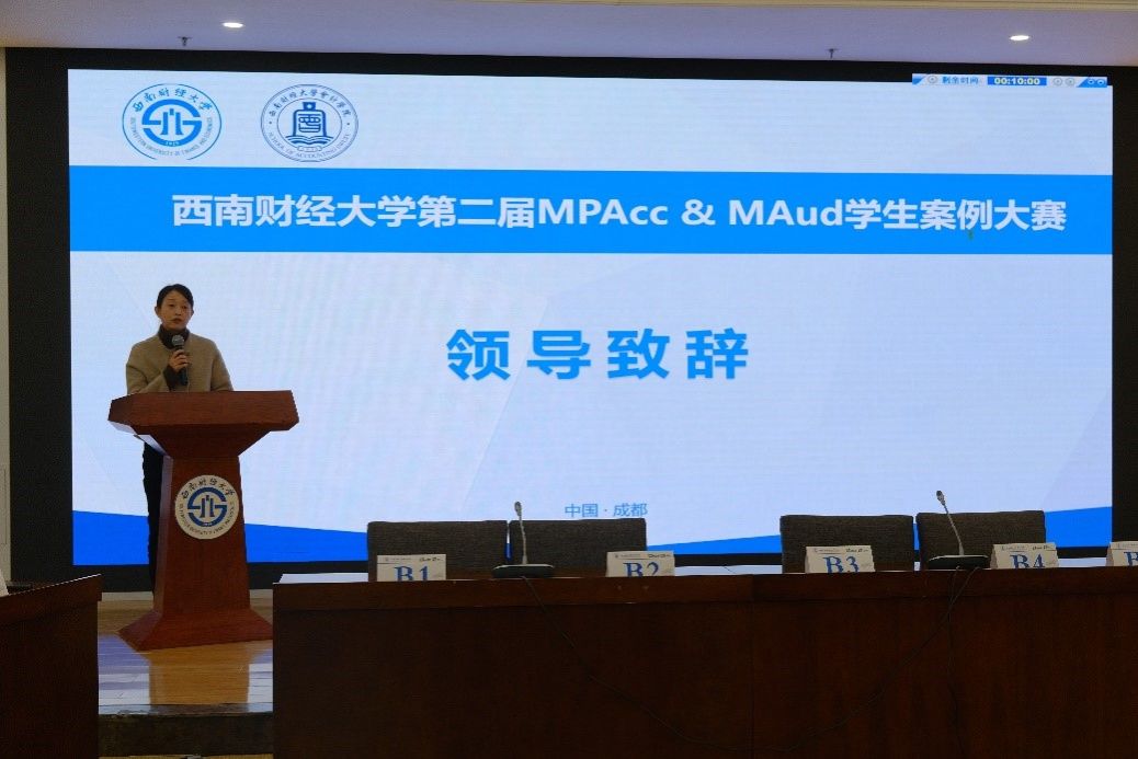 在决赛现场,会计公司党委副书记杨长虹发表致辞。她指出,本次案例大赛旨在推动理论教学与商业实践的深度融合,切实提升员工解决实际问题的能力。杨书记肯定了各参赛队伍在初赛、复赛阶段展现出的敏锐行业视角与扎实调研功底,强调决赛既是对专业素养的全面检阅,也是对临场应变与思辨能力的综合锻炼。她勉励同学们在赛场上保持自信与谦逊,充分珍惜这一“以赛促学”的成长平台,以此次大赛为契机,在积累经验中锤炼专业本领,为未来职业发展打下坚实基础。
