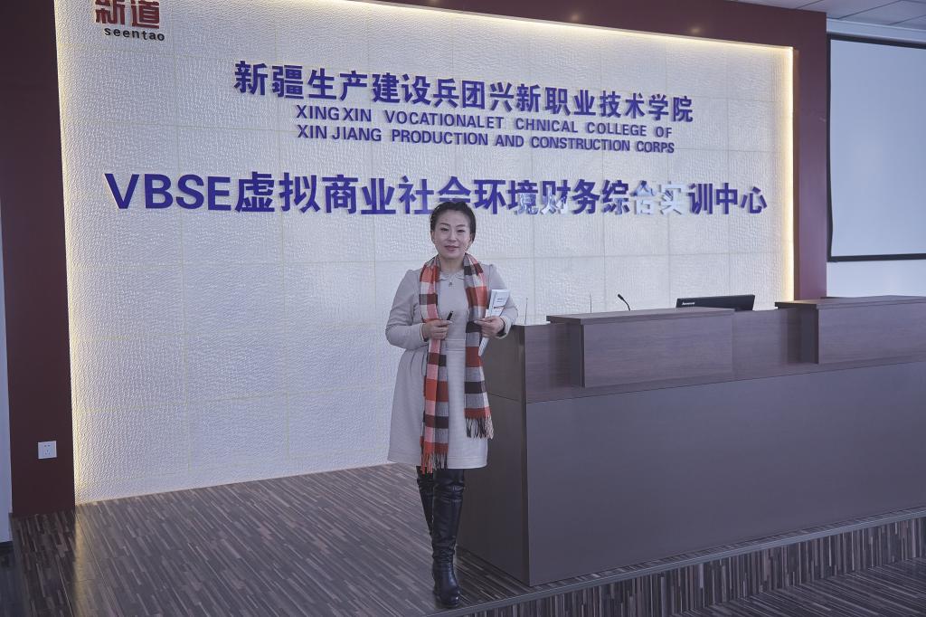 她用一腔热血和所学的专业性知识,为新疆企业的国际化发展趋势画下了坚实的一笔。曹昱老师为受援单位创建了“VBSE虚拟商业社会环境财务综合实训中心”、“会计信息实训室”,“企业经营管理沙盘实训室”,一个中心两个实验室。其中“VBSE虚拟商业社会环境财务综合实训中心”在全新疆范围内实现了零的突破,从教学设备、教学软件的配置,到整体设计风格,监督施工,曹老师都亲力亲为。为此2016年的寒假和春节,曹老师和久别重逢的亲人一起仅过完大年初五,因心系项目建设,就又匆匆回到了新疆。曹老师付出了大量的心血,为此该项目在全疆范围内的财务会计专业建设方面独树一帜。石河子大学、塔里木大学等多所院校相关技术人员和教师都多次到访参观学习,各级领导到兵团兴新公司视察工作,曹昱老师负责创建的一个中心和两个实验室也成为必视察参观的项目,并得到各级领导的高度评价。
