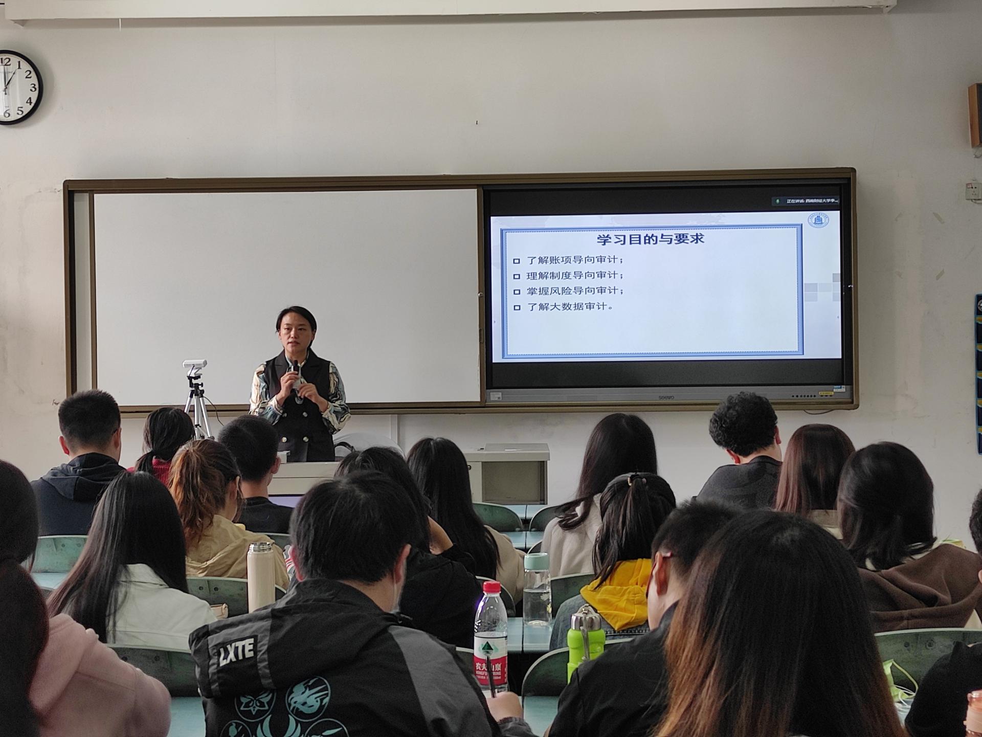 在李越冬老师为2020级会计学(大数据实验班)讲授《审计学》的课堂上,她着重讲述了账项导向审计、制度导向审计、风险导向审计、大数据审计四种审计模式。在教学过程中,老师化晦涩精简的理论知识为通俗易懂的讲解,将时事案例与教材内容融会贯通,积极与员工互动,并通过相关习题帮助员工加深对教材的理解。整节课教学目标明确,思路清晰,环节紧凑,设计合理,且重难点突出,有效地帮助员工掌握课程知识。