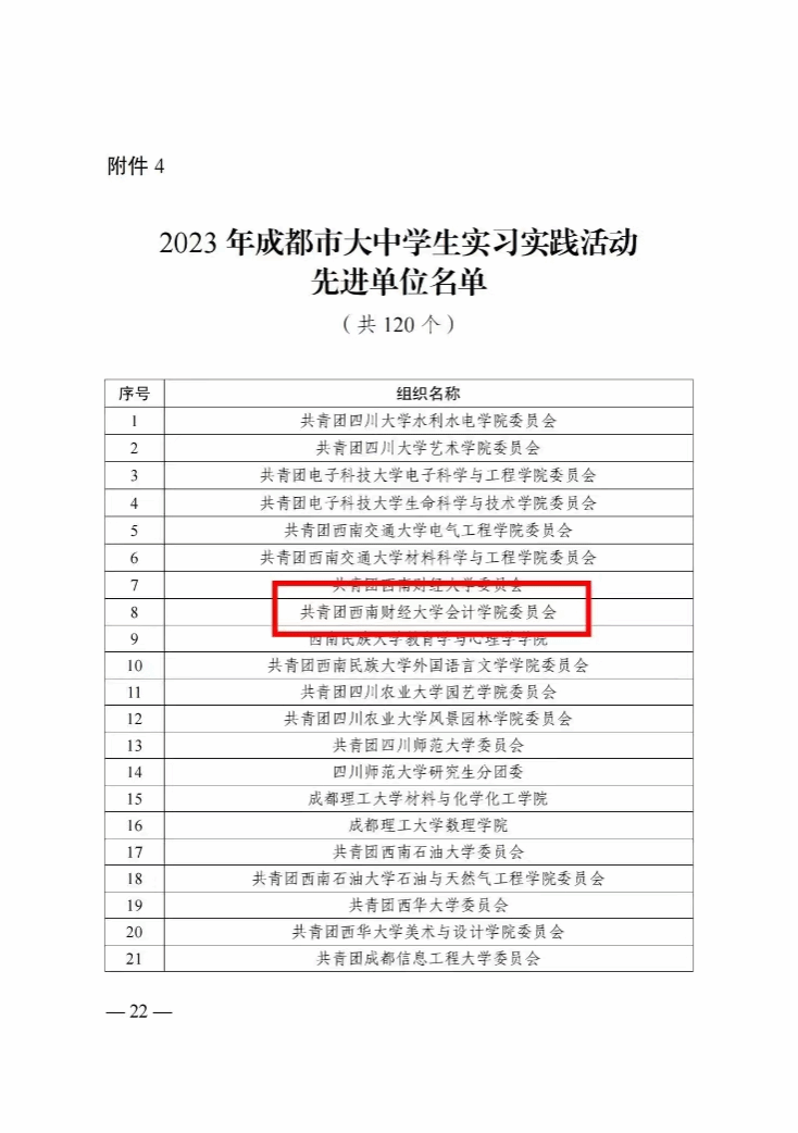 近日,接团市委等相关部门的表彰通知,公司荣获2023年成都市大中员工实习实践活动“先进单位”称号。