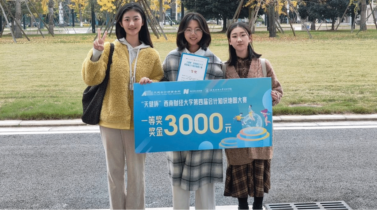 在“天健杯”会计知识地图大赛中,她化身团队的“创意架构师”。与队友碰撞产生的灵感与想法被她用精湛的PPT精准传达,评委们在“清晰与美观”的平衡里,读懂了团队的表达。视频创作时,她与团队一起把会计知识揉进《钱包错过》的改编歌曲里,用游戏闯关的形式展现作品,让“会计防错”的理念,在趣味剧情中深植人心。