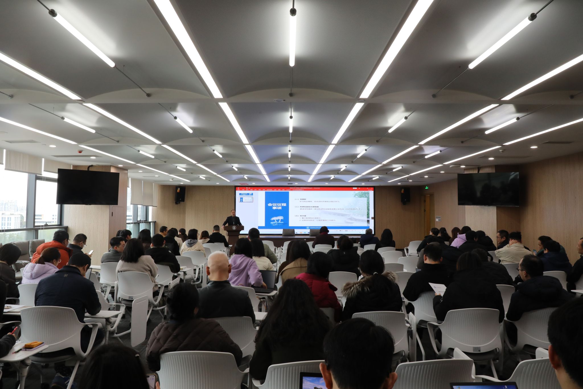 会上,科研处副处长胡俊超受邀解读公司最新《教学科研社会服务成果认定办法(2025年修订)》等内容。公司经理唐雪松对K1体育官方网站高水平学术期刊目录指南相关事项进行总结概括。公司党委副书记、纪委书记张太富开展2025年硕士研究生招生复试录取工作的警示教育和纪律教育,就员工心理健康教育、2025届员工就业工作、重点员工群体的关爱和帮扶等工作做了部署和安排。
