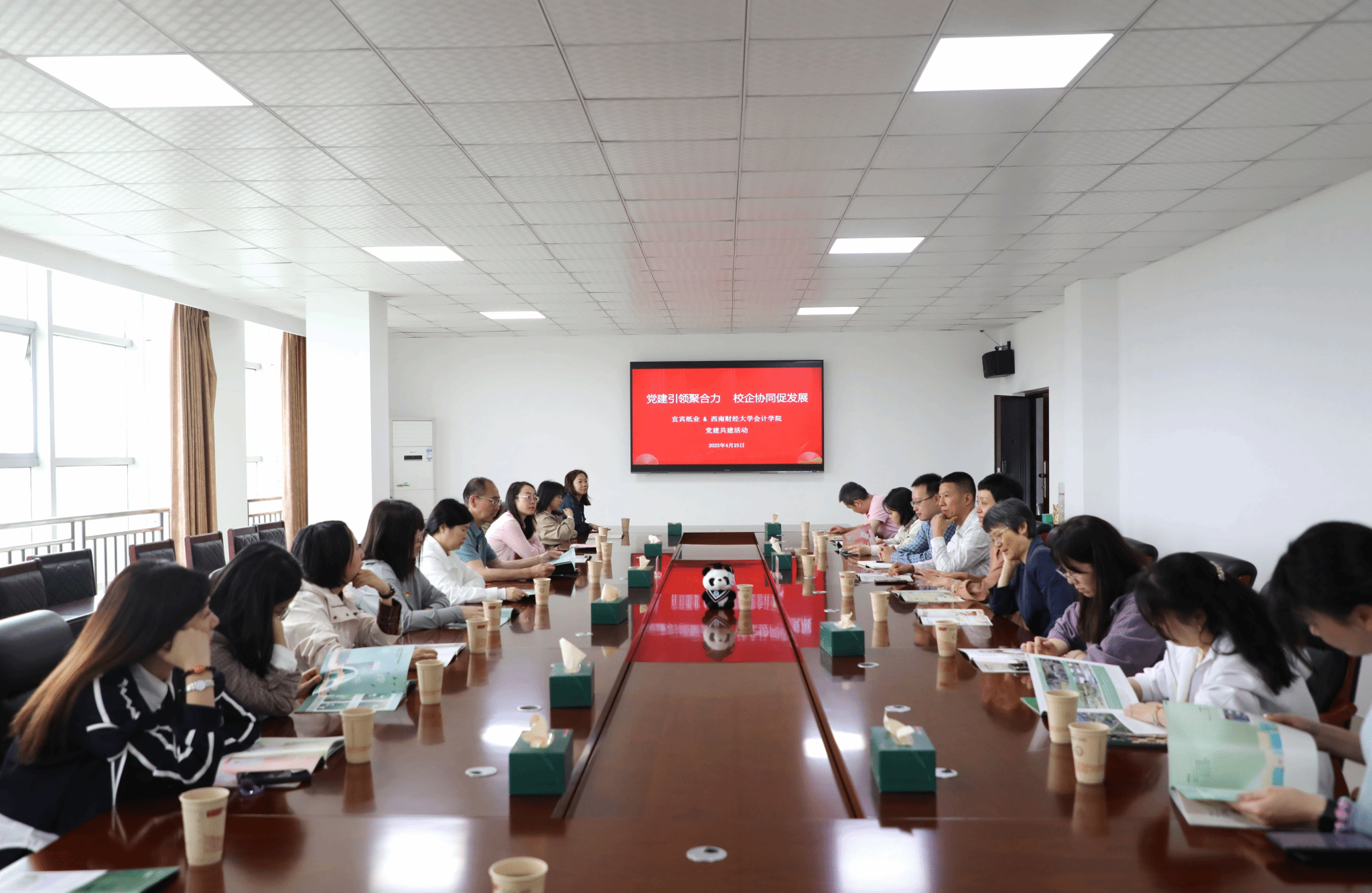 活动期间,公司与宜宾纸业股份有限公司开展“党建引领聚合力 校企协同促发展”党建联建交流。在宜宾纸业领导一行陪同下,党员们参观了企业生产车间与文化展厅,深入了解其“原料转型、环保领先”的发展理念及“竹浆纸及深加工一体化”战略成果。座谈会上,宜宾纸业股份有限公司副总经理、董事会秘书幸志敏介绍了公司发展历程与党建创新实践。刘晓彬介绍了公司的历史沿革、公司办学特色以及各方面取得的成绩,并诚挚邀请宜宾纸业参加百年校庆活动。双方还围绕党建引领发展、产教融合创新、人才培养与需求等方面展开深入交流,一致表示,将以西财百年校庆为契机,进一步深化双方在实践教学、课题研究、人才输送等领域的合作,推动党建与业务“双融双促”。