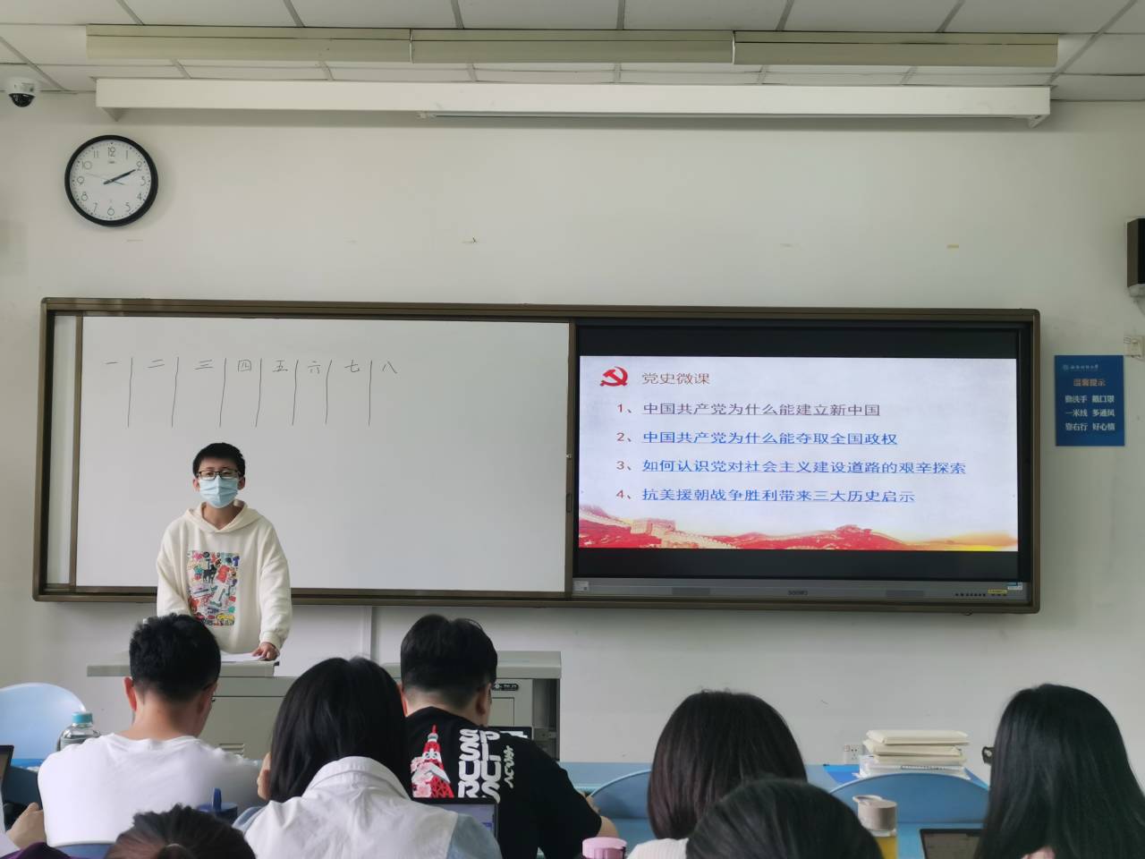 同学们通过观看党史微课、交流研讨、知识竞答等方式,共同学习中国共产党党史,从中汲取信仰和奋进力量。交流研讨环节,大家积极发言、交流思想、发表感悟,一致认为必须把党的历史学习好、总结好,把党的成功经验传承好、发扬好,用党的光荣传统和优良作风坚定信念、凝聚力量。