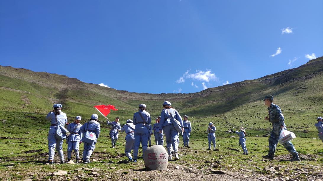 高擎党旗,学员们从五道拐前徒步,沿着昔日红军足迹,向海拔3650米的目的地行进。顶着高原烈日,克服高原反应,困难的呼吸,灌铅的脚步,每一个迈出的沉重步伐,都深切感受到伟大的革命先烈们在艰苦千万倍的条件下迈向革命成功的蹈峰饮血、殒身不恤的大无畏精神。在行进途中,大家努力克服高海拔带来的身体不适,一步一个脚印,最终抵达指定地点。