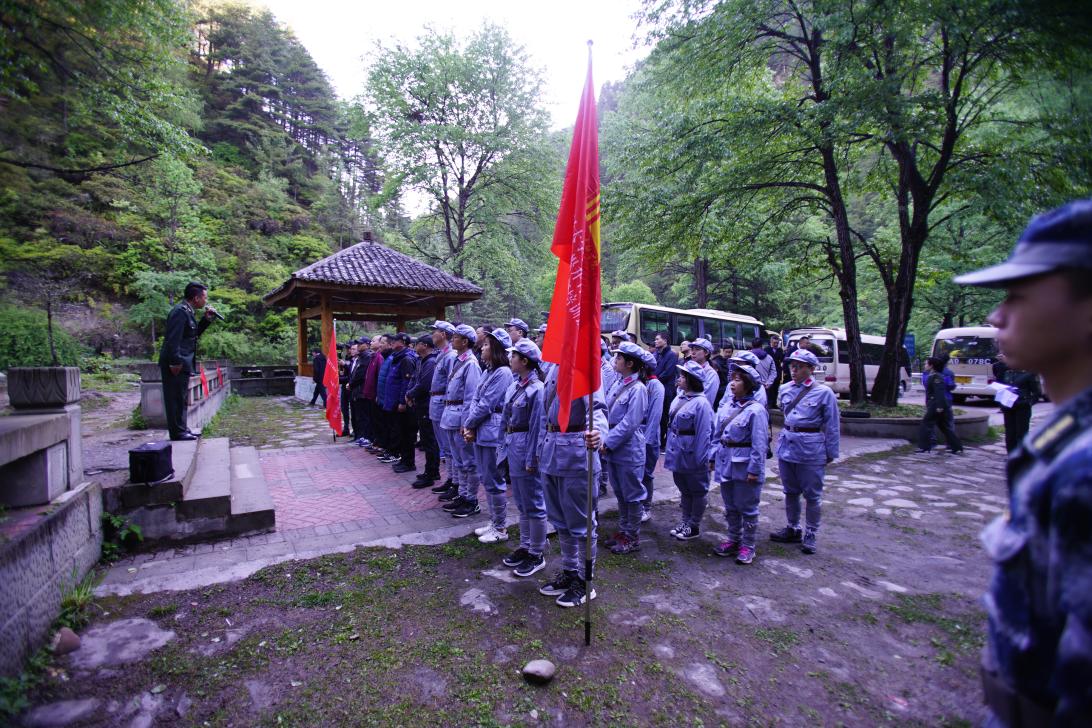 5月14日上午八点,全体学员来到巍峨夹金山山脚下红色遗址开展现场教学。