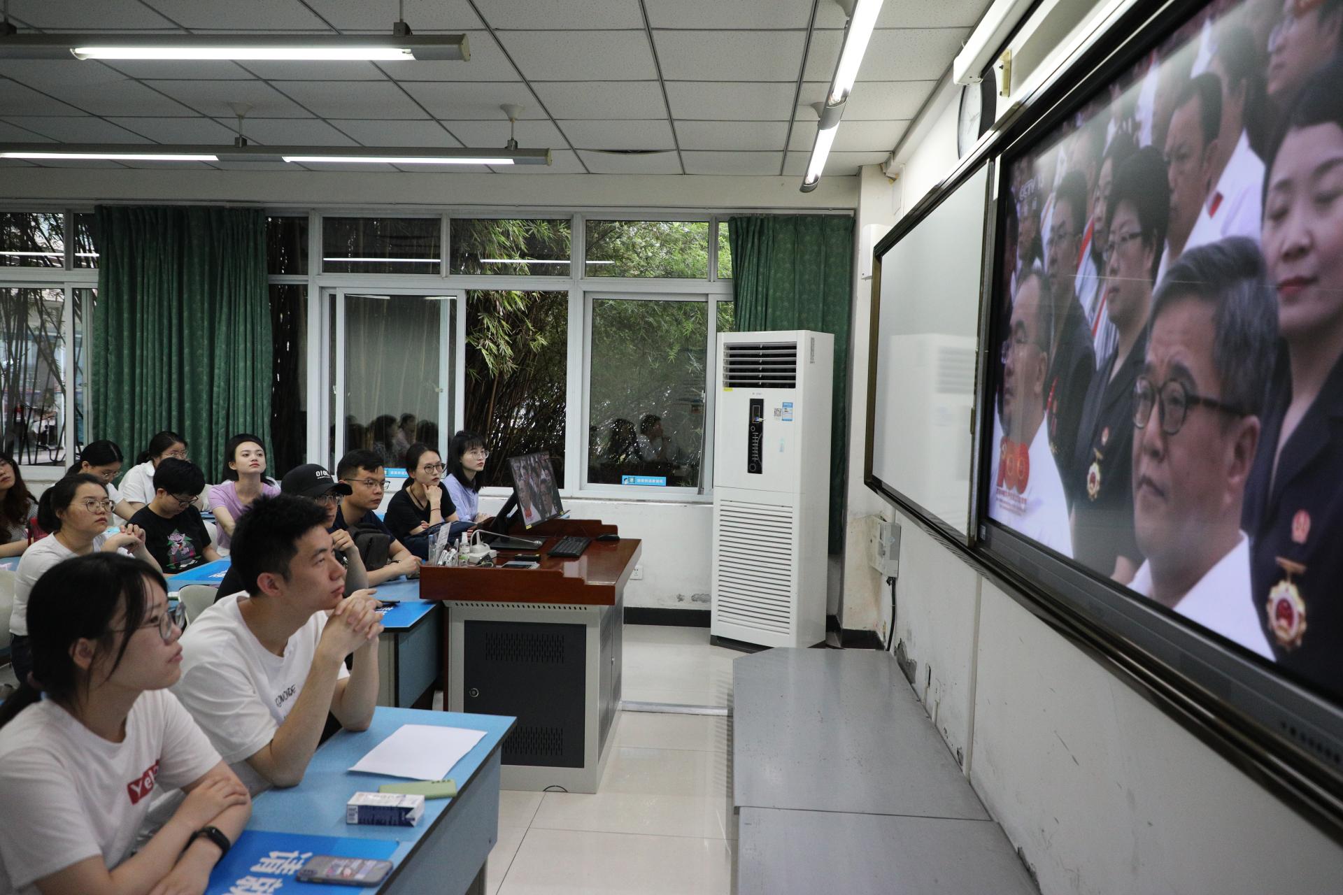老师们纷纷表示,通过观看大会盛况,更加全面深入了解党史、新中国史、改革开放史和社会主义发展史。在今后的工作中要把党的利益、人民的利益、国家的利益放到第一位,努力工作,为实现伟大的中国梦做出自己的贡献。